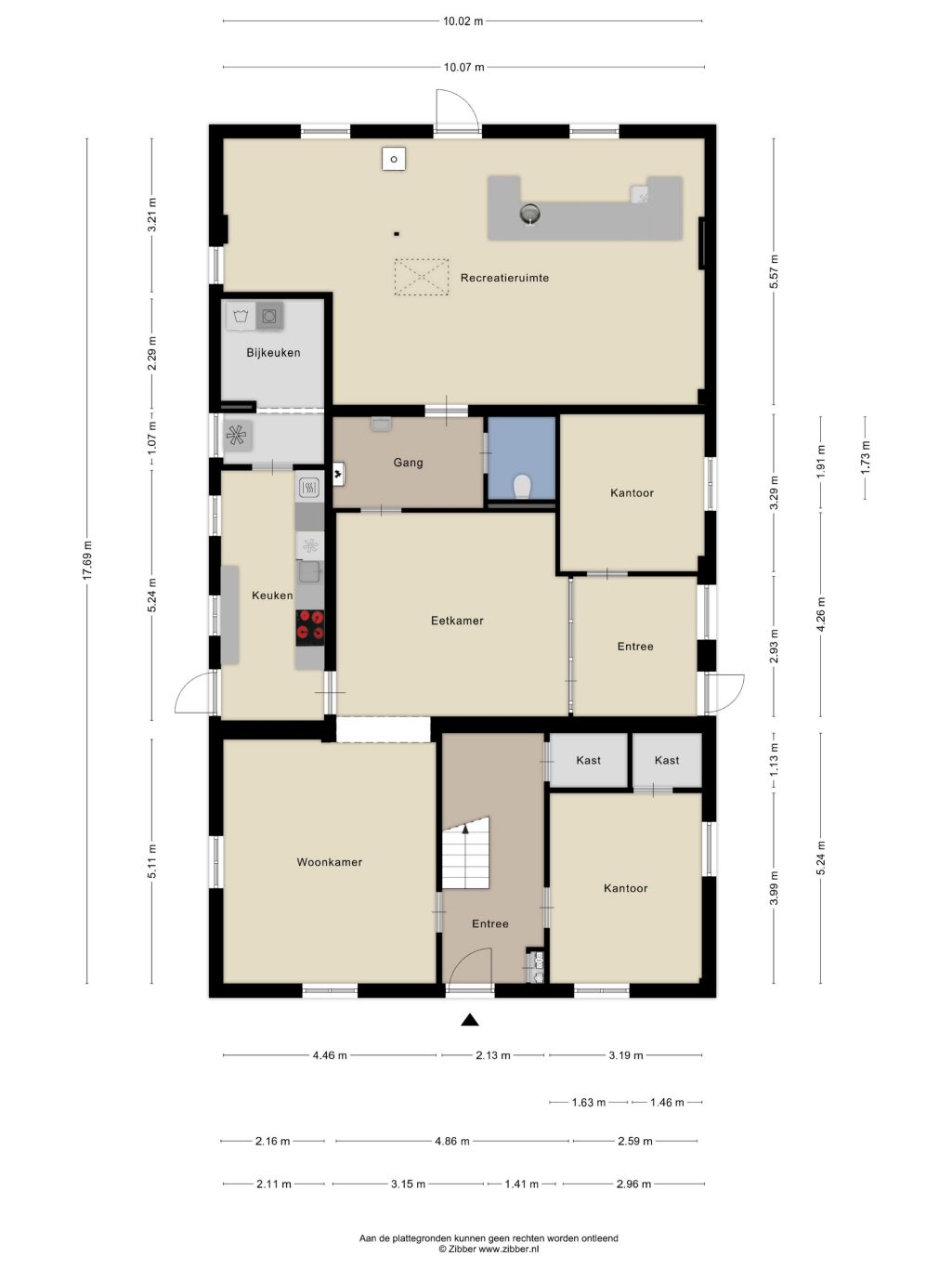 U betreedt de woning via het zijportaal. Op de begane grond treft u de eetkamer, keuken, zitkamer, bijkeuken, toilet en doorloop naar het achterhuis aan. Tevens bevinden zich op de begane grond twee slaapkamer. Deze zijn ook in te richten als kantoorruimte, werkruimte of hobbyruimte.