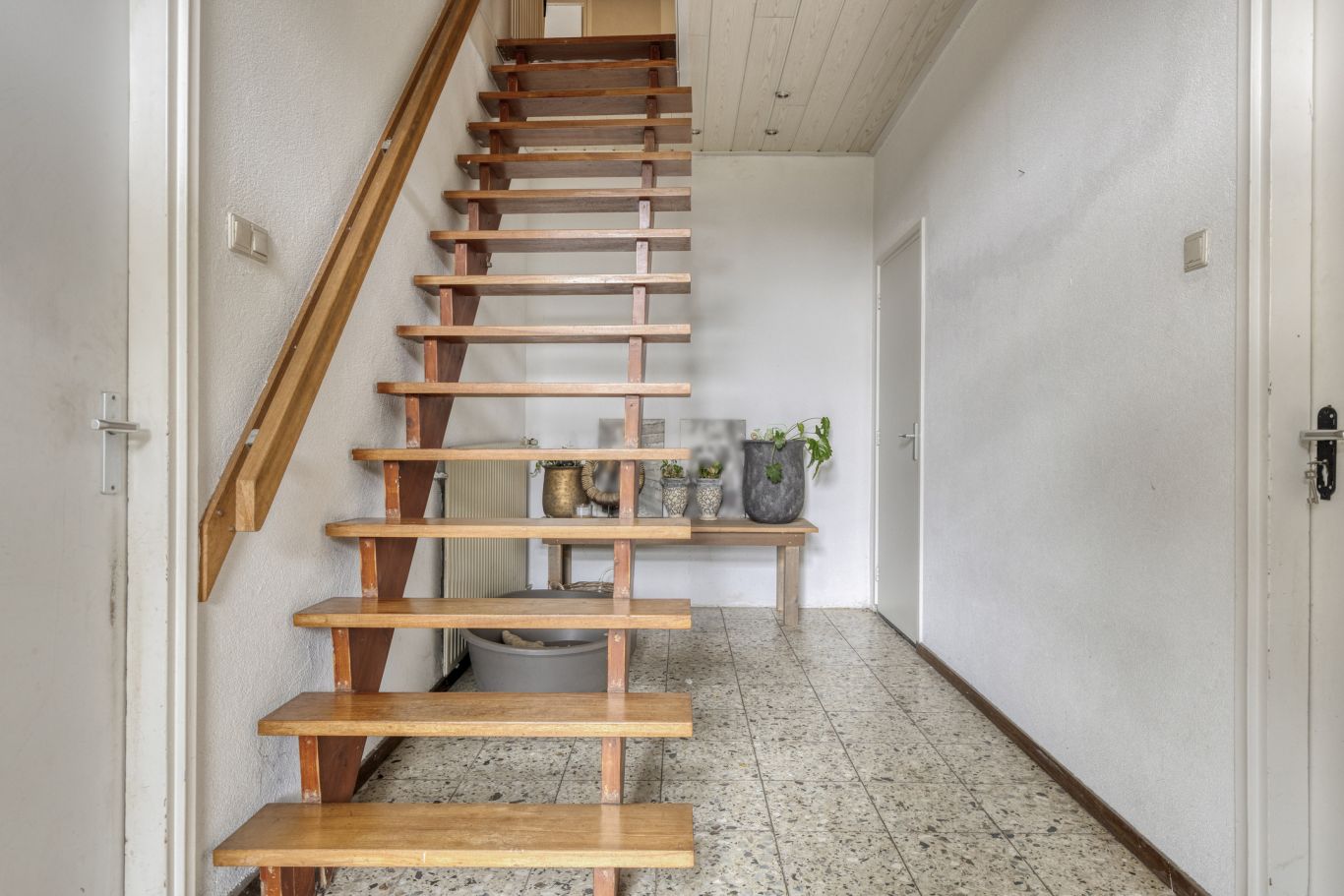 Vanuit de zitkamer komt u in de hal, waarin de trapopgang naar de eerste verdieping gesitueerd is. Tevens bevindt zich hier een tweede slaapkamer, welke ook voor andere doeleinden gebruikt kant worden.