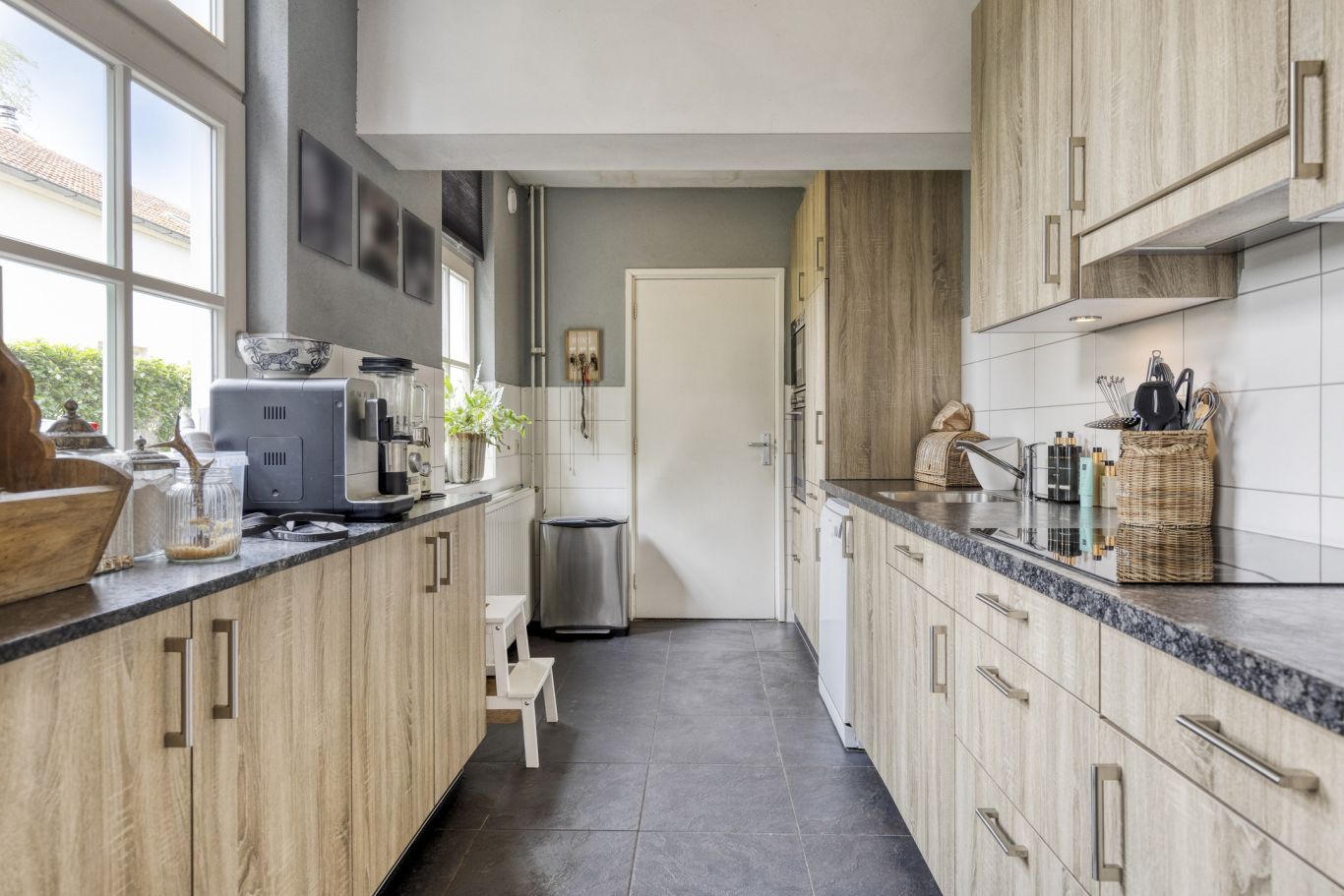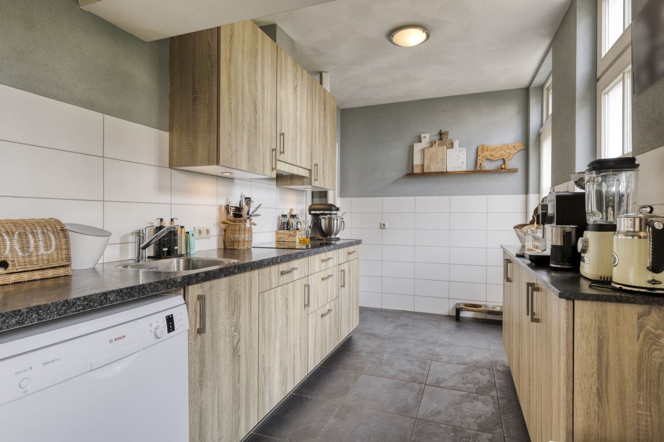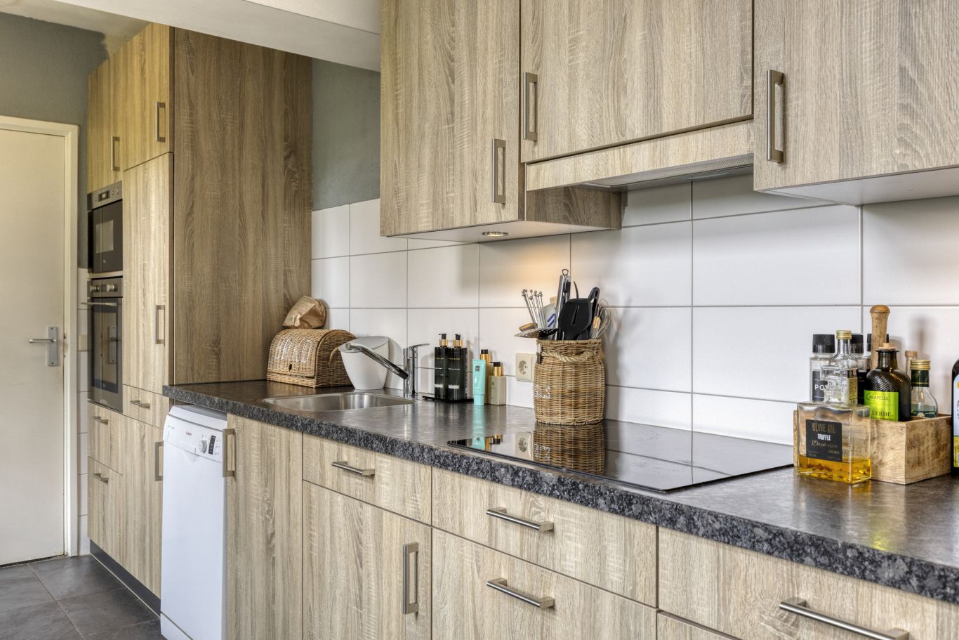 Vanuit de eetkamer heeft u ook toegang tot de keuken. De keuken is uitgevoerd in een lengteopstelling met inbouwapparatuur zoals een rvs-spoelbak, 4-pits kookplaat, magnetron en oven, afzuigkap, koelkast en vaatwasmachine.