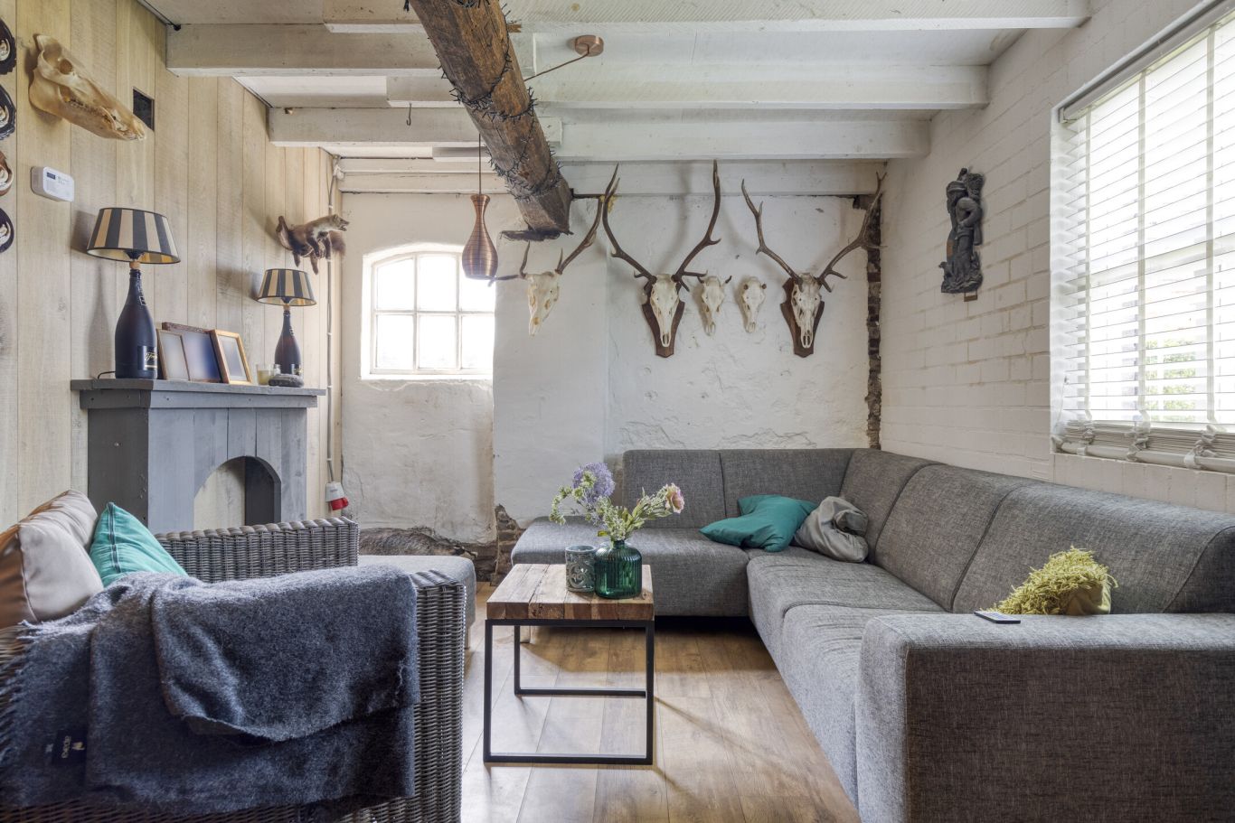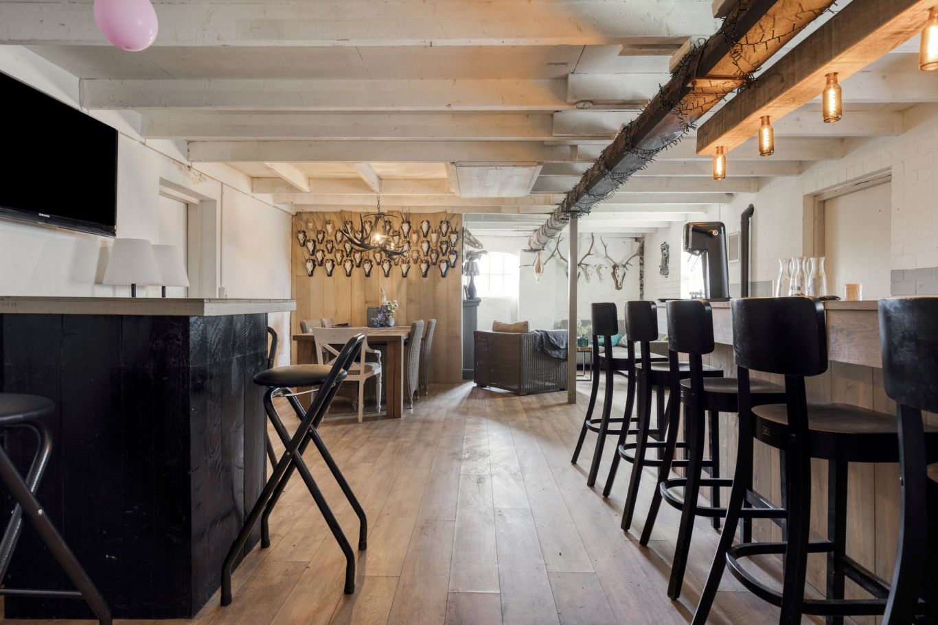 Het achterhuis is in gebruik als recreatieruimte en ingericht met een bar en enkele zithoeken.
