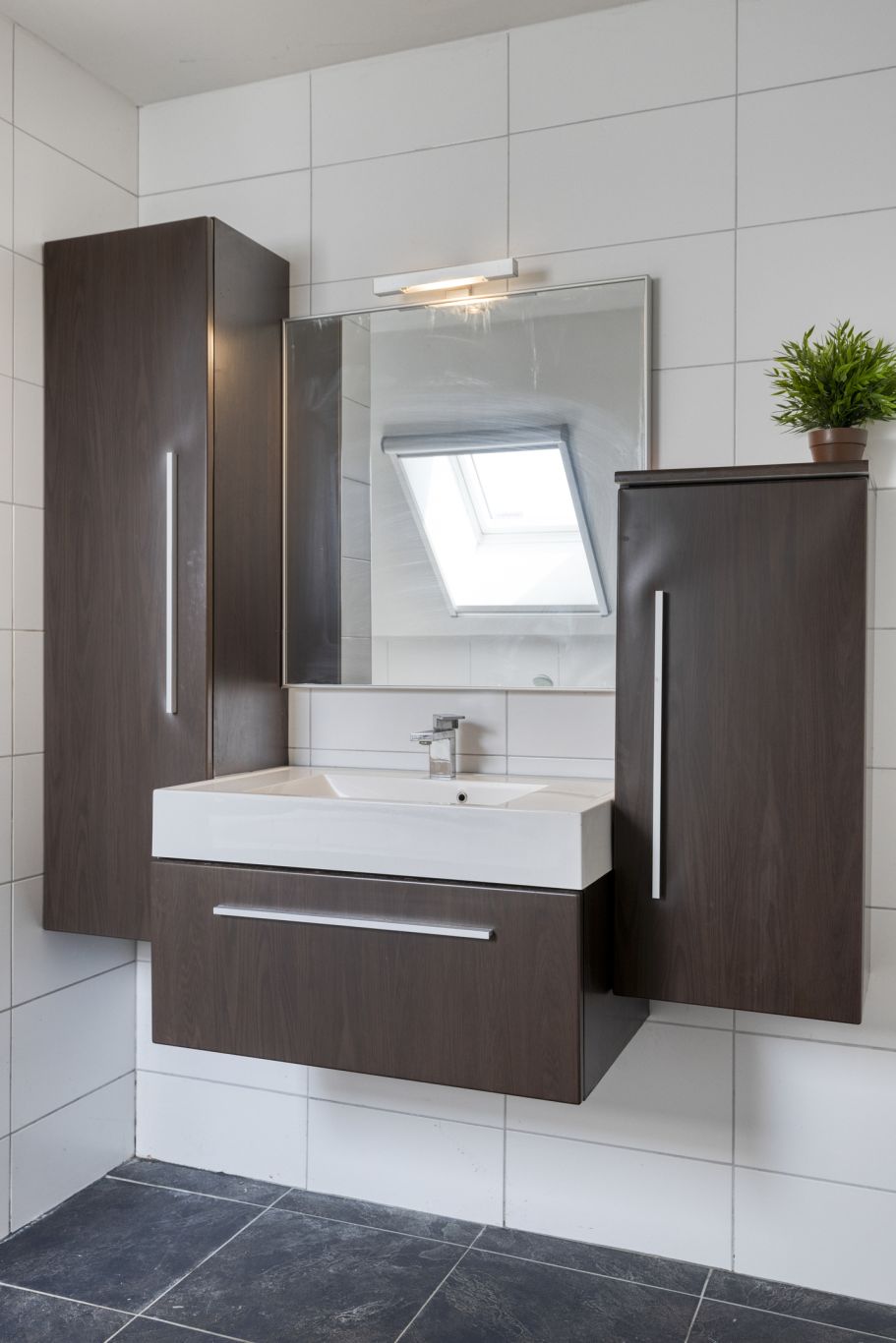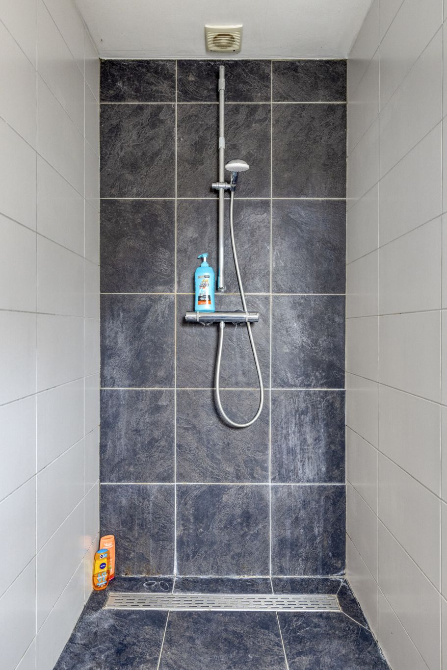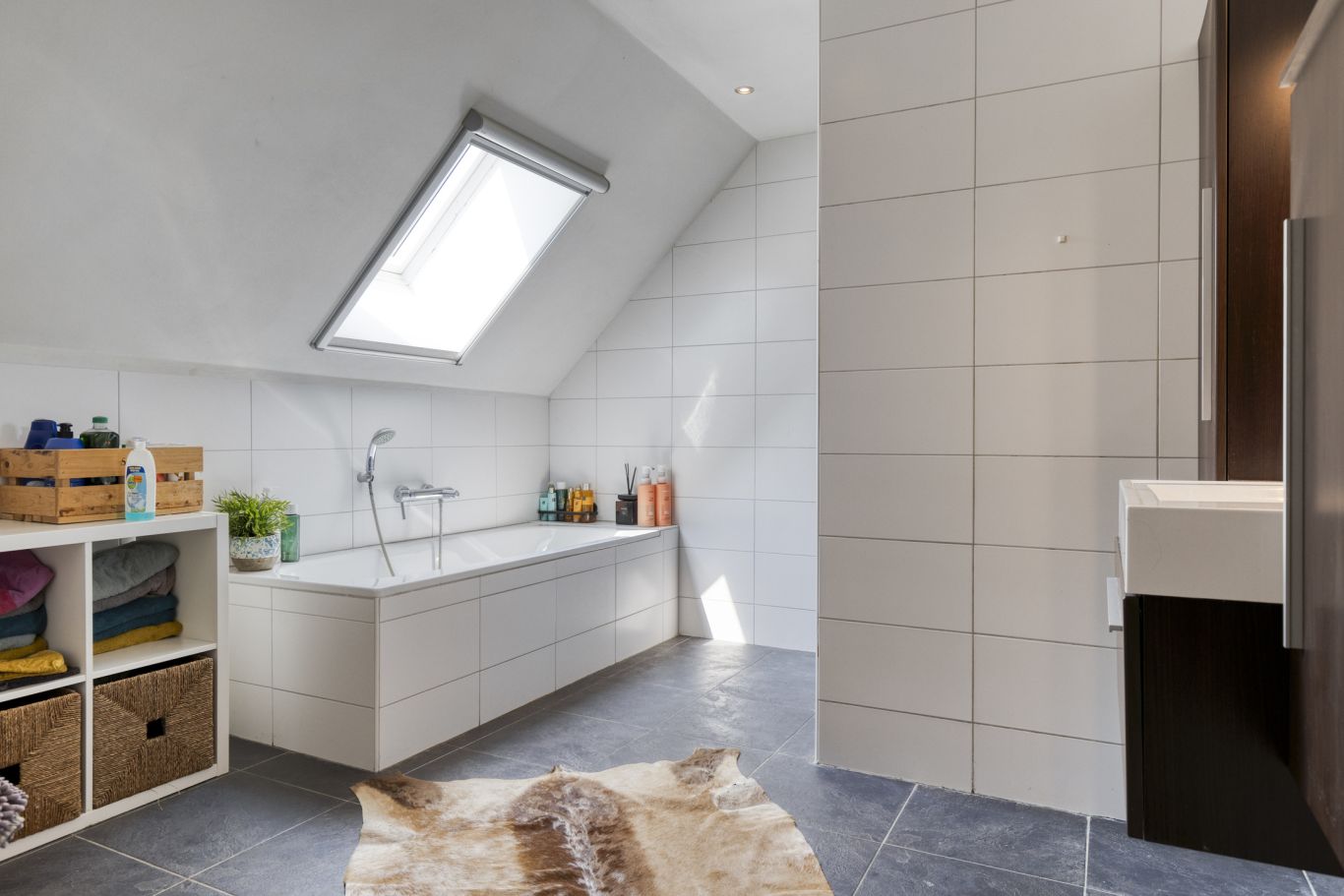 De ruime badkamer heeft een ligbad, lnloopdouche, inbouwtoilet en wasmeubel met spoelbak.