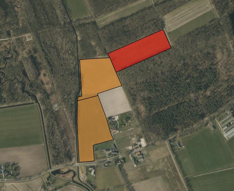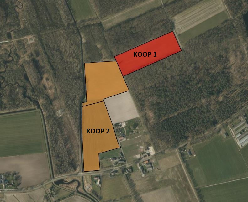 Het betreft een verkoop bij inschrijving waarbij het perceel in twee delen wordt aangeboden. Uiteraard is het ook mogelijk om voor het gehele perceel in te schrijven.