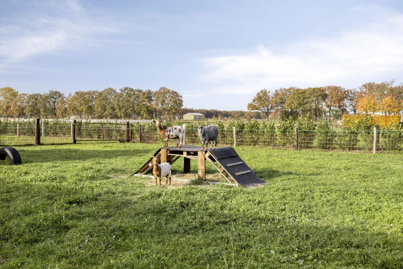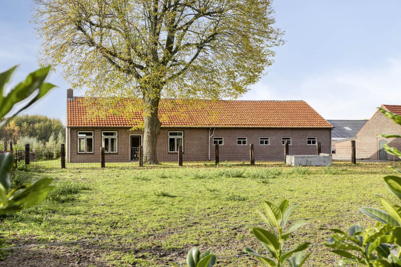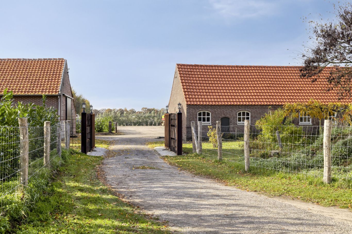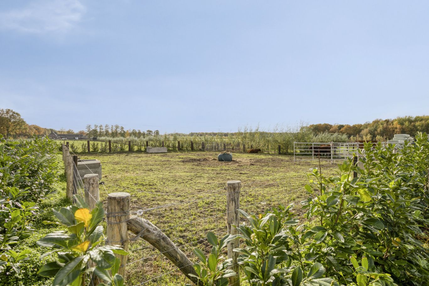 Langs de omheining is een haag aangeplant, zodat het geheel natuurvriendelijk oogt en mooi opgaat in de landelijke