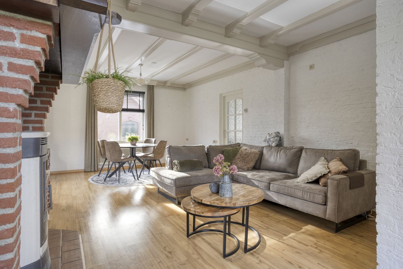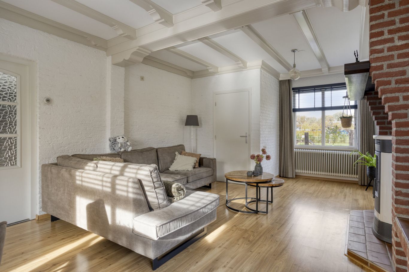 meterkast en de trapopgang naar de eerste verdieping bevinden. Vanuit de hal bereikt u de royale woonkamer met