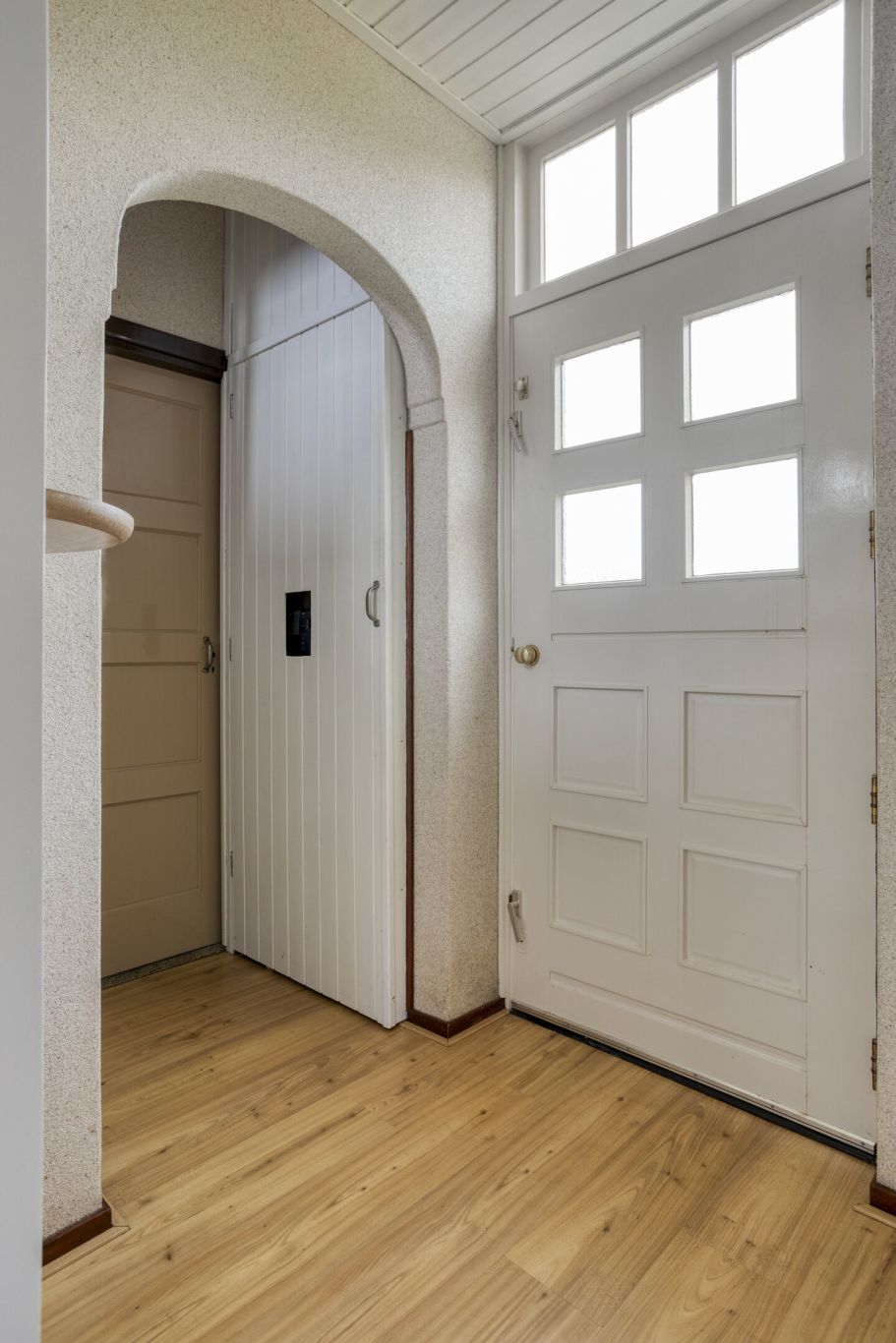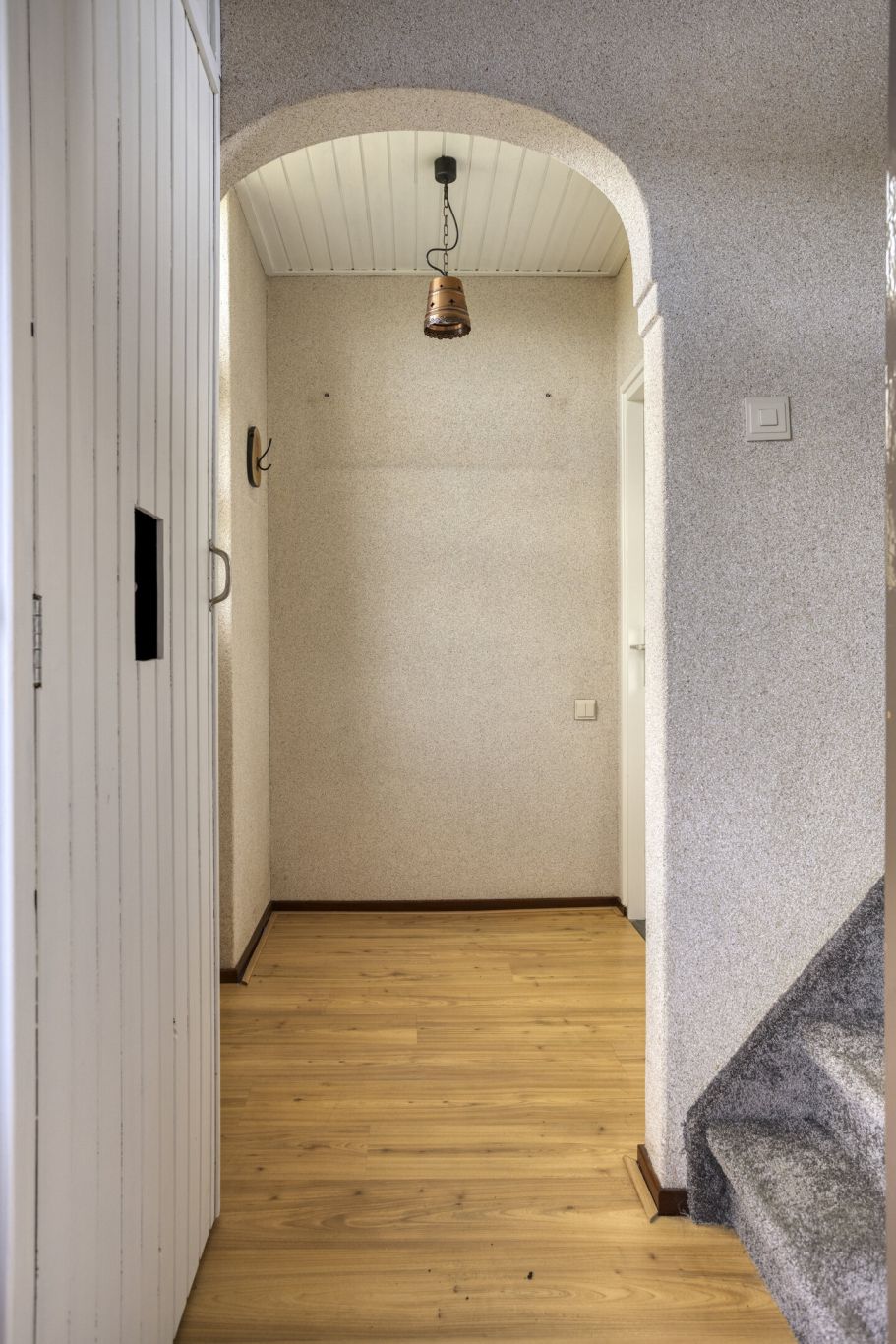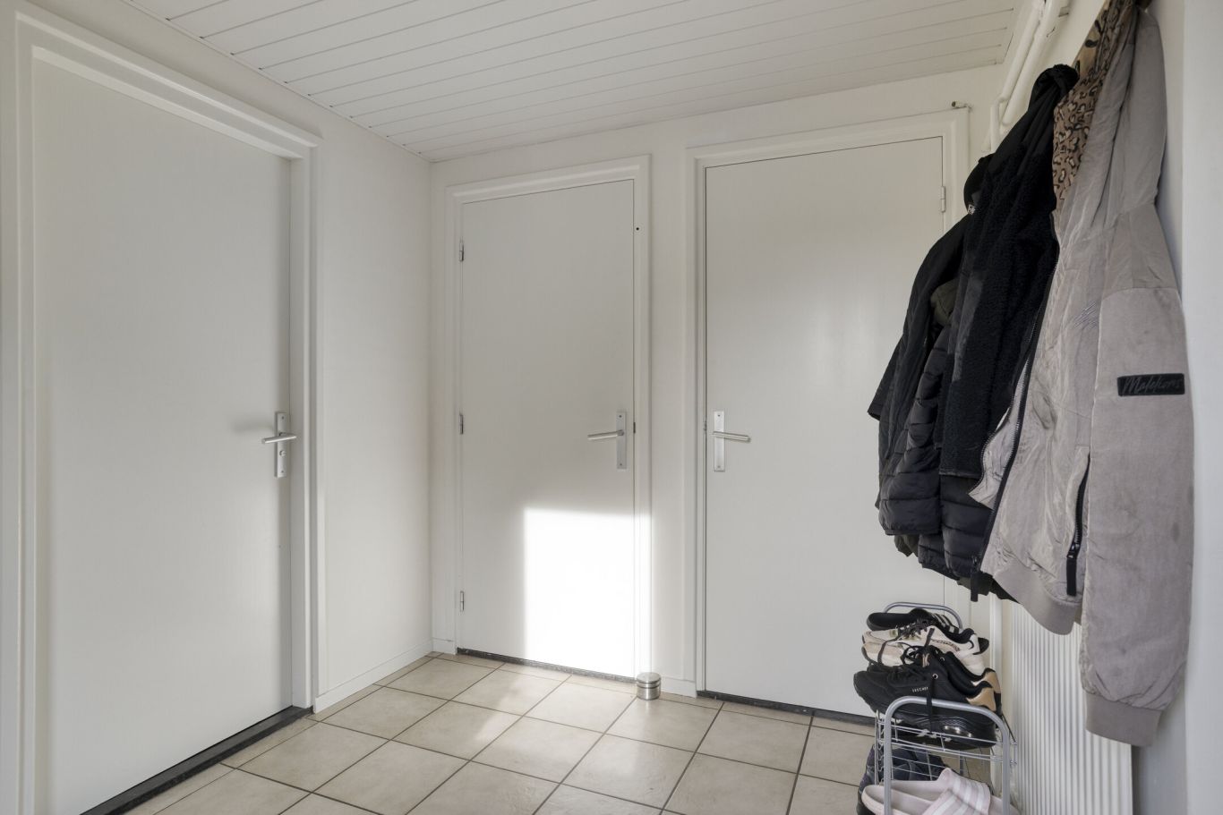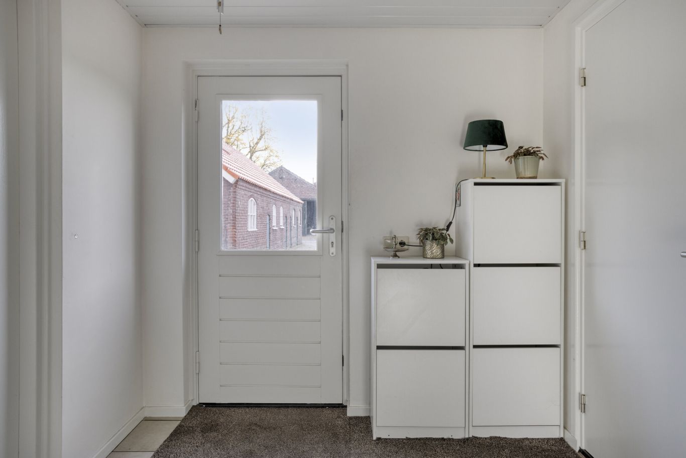 Via de voordeur komt u binnen in de entree, waar zich de