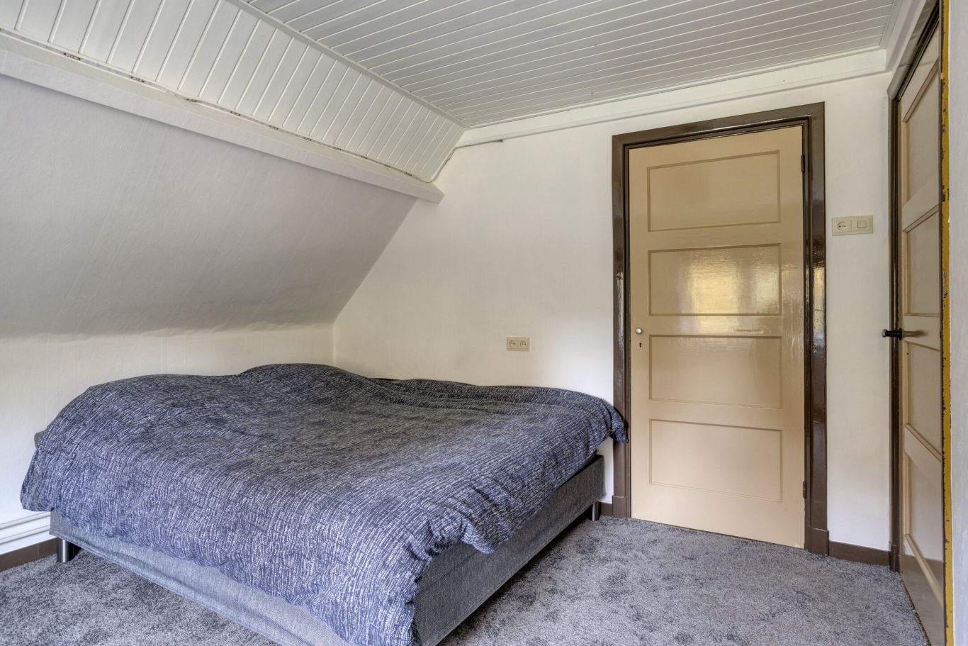 bereikt u een slaapkamer met ensuite badkamer en een berging die toegang geeft tot het achterhuis.