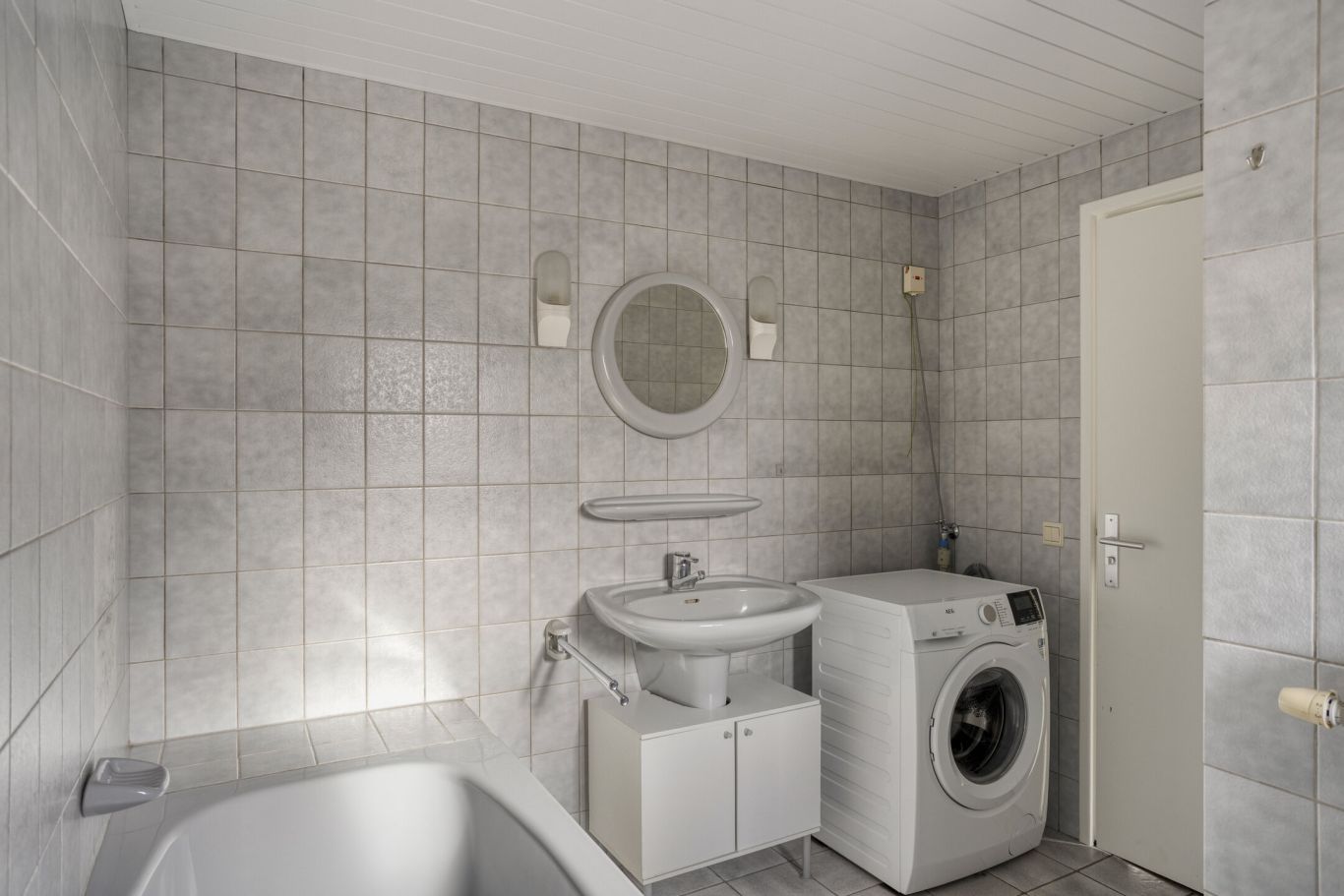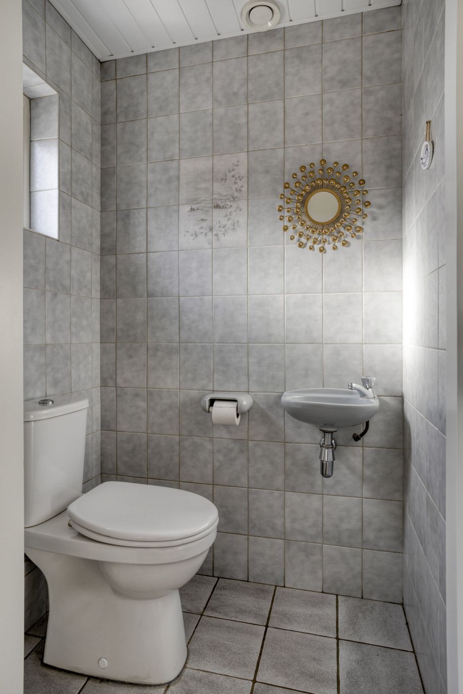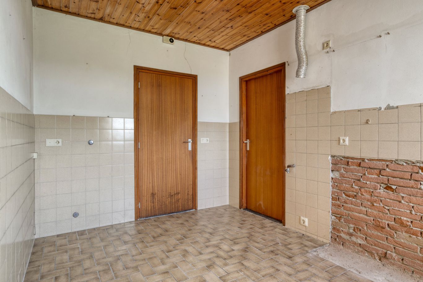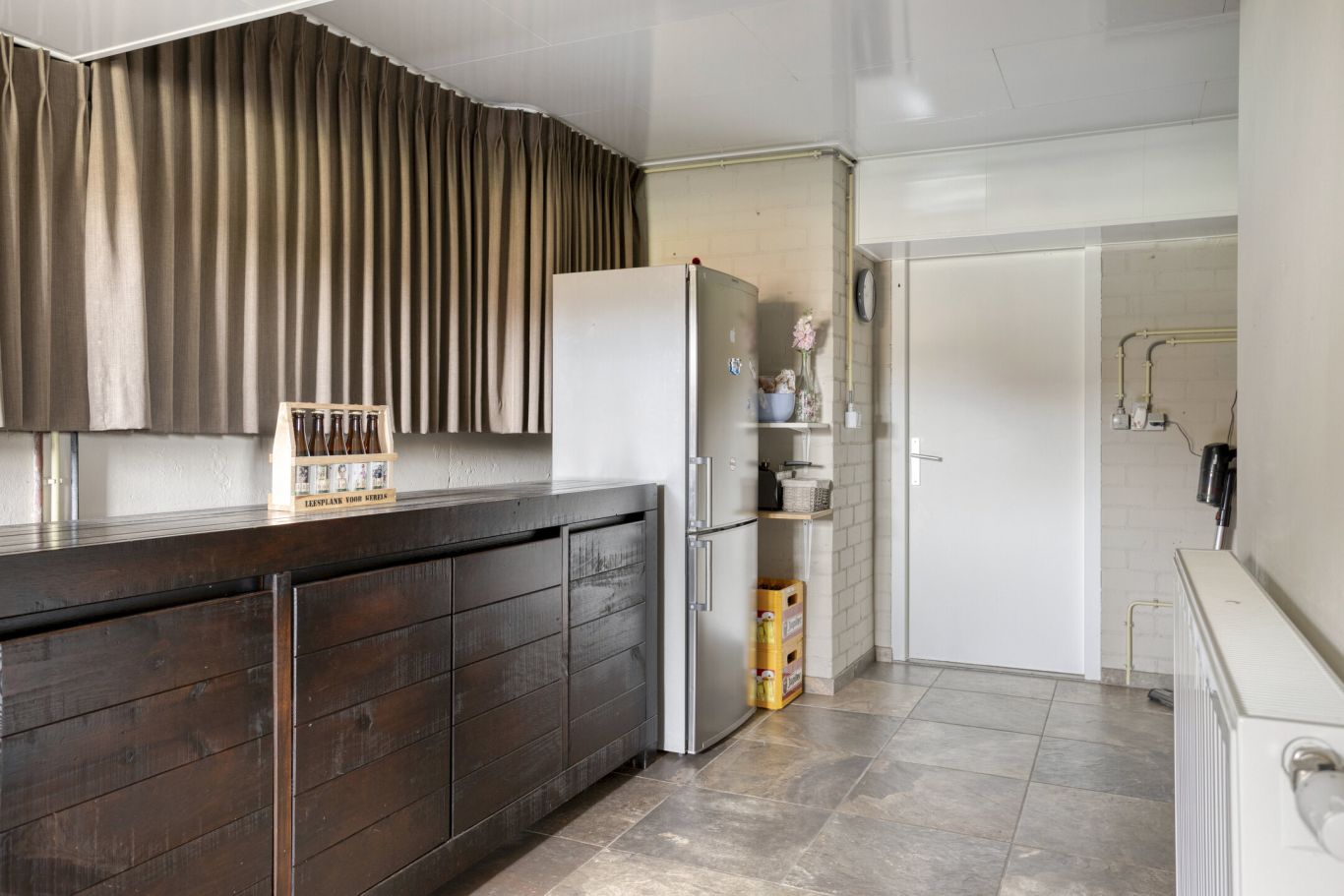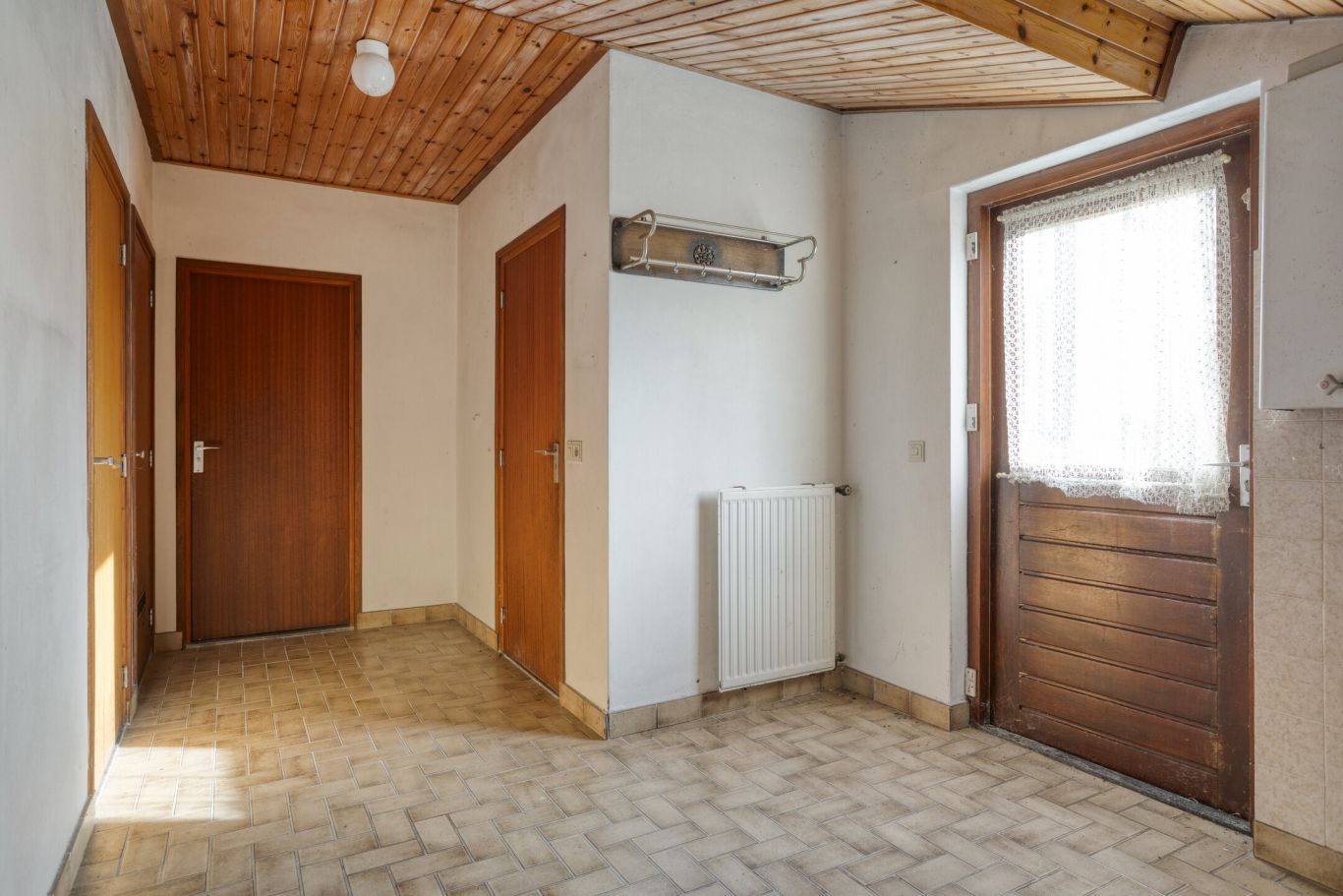 Bij de keuken bevindt zich een hal die toegang biedt tot het toilet, de badkamer en de bijkeuken. Vanuit de bijkeuken