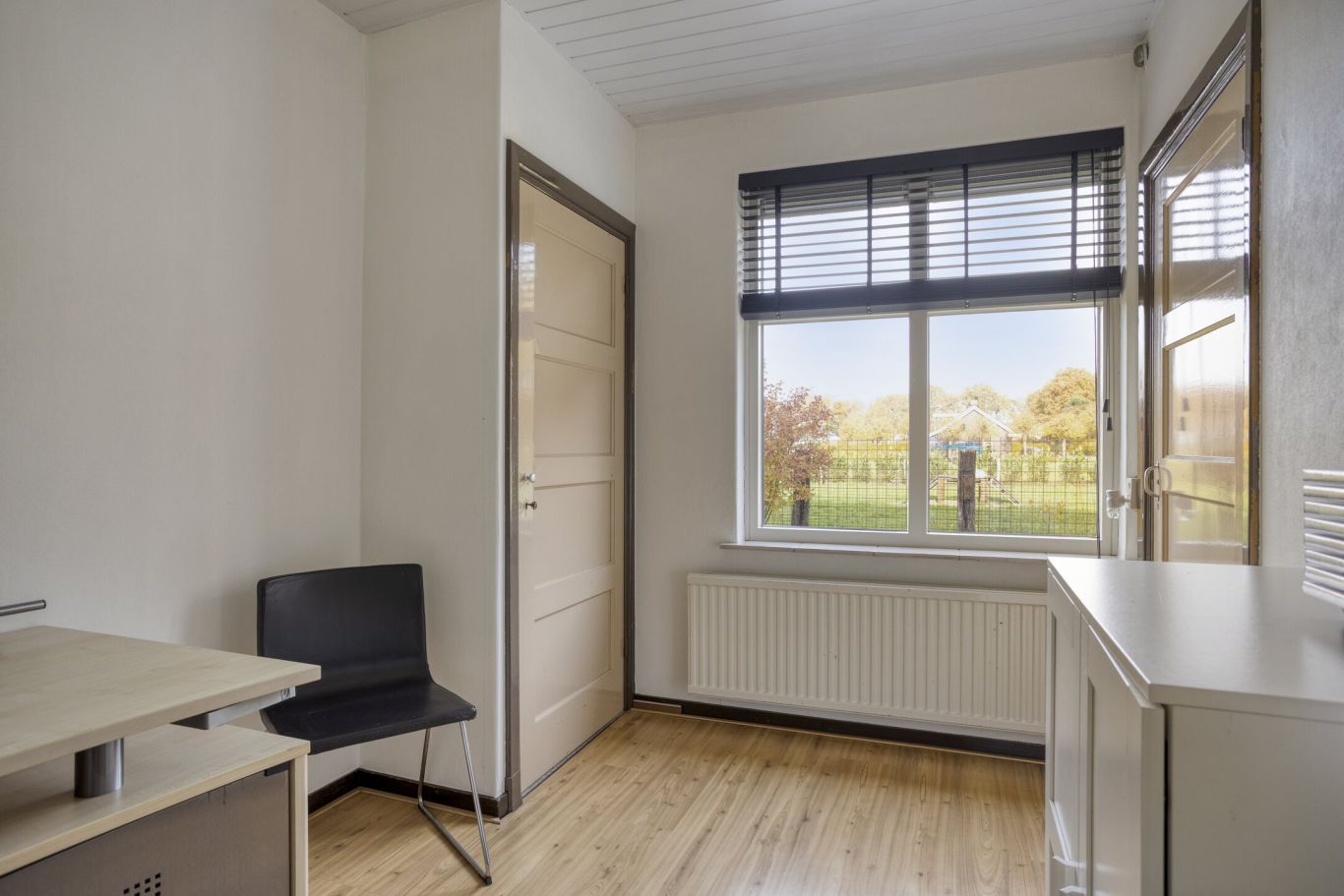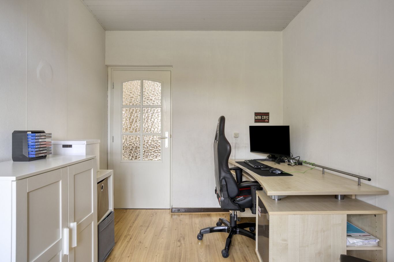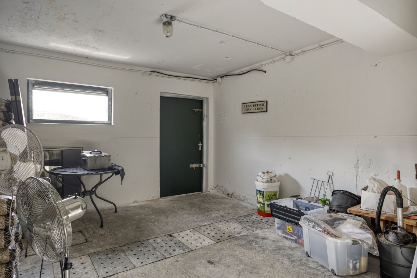 is een praktische ruimte met een directe verbinding naar zowel het kantoor als de kelder.