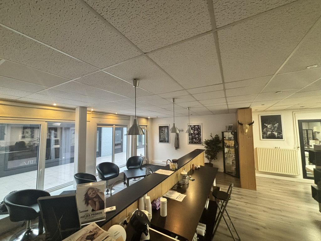 Deze ruimte biedt een perfecte combinatie van comfort en functionaliteit. Dankzij de grote ramen is er een overvloed aan natuurlijk daglicht, waardoor een prettige en inspirerende werkomgeving ontstaat. De ramen zijn tevens te openen, wat zorgt voor een aangename ventilatie en een frisse werksfeer.