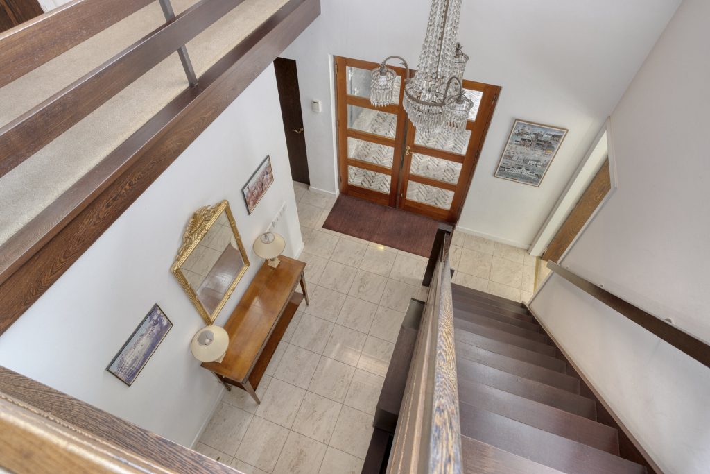 De badkamer op de verdieping is zowel toegankelijk vanuit de master bedroom als vanuit de overloop en is ingericht met een ligbad, bidet en dubbele wastafel. De derde badkamer heeft een douche en wastafel, en biedt ruimte voor wasapparatuur en de CV-ketel. Via beide badkamers is een balkon te bereiken.