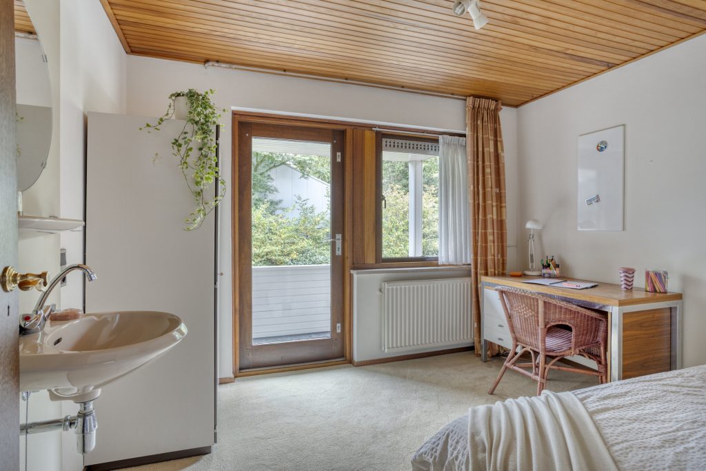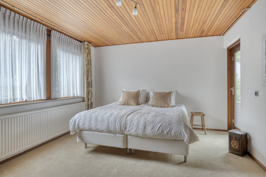 Op de eerste verdieping bevinden zich vijf (slaap)kamers, een grote hobby/werkruimte, twee badkamers en een separate toiletruimte. Vier slaapkamers hebben een wastafel en twee slaapkamers beschikken over ruime vaste kasten. Twee slaapkamers hebben toegang tot een overdekt balkon. Daarnaast is er een inloop linnenkast.