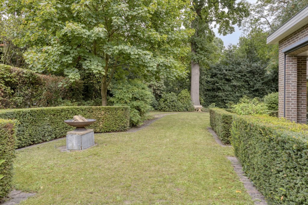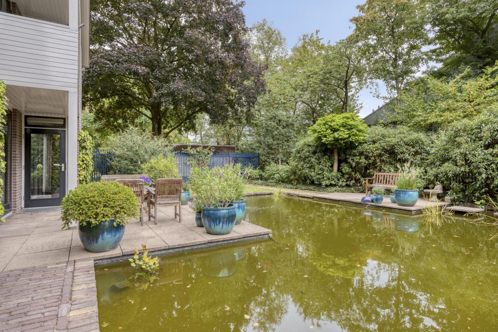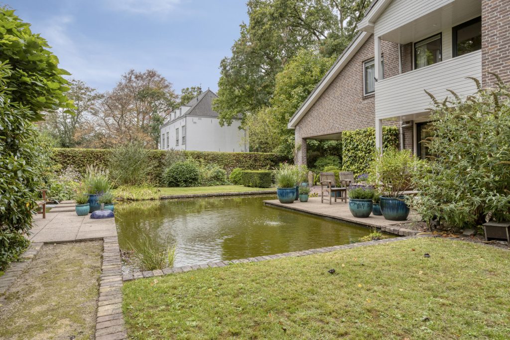 In de door een architect prachtig aangelegde tuin komt de natuur naar je toe: vogels, eekhoorntjes, de roep van een uil. Ontbijt in de ochtendzon, overdag de zuidzon en nog lang nagenieten in de avondzon. Het overdekte terras met warmtelamp biedt de mogelijkheid om ook tijdens koudere of regenachtige dagen van het buitenleven te genieten. Er is een grote vijver, uitgestrekt gazon, hegjes en diverse borders met vaste beplantingen, ideaal voor verschillende zitjes. De tuin is omringd door prachtige bomen en hoge struiken zodat je je in een groene oase waant met heel veel privacy. Hier kunt u echt genieten van de rust en het groen van de tuin.