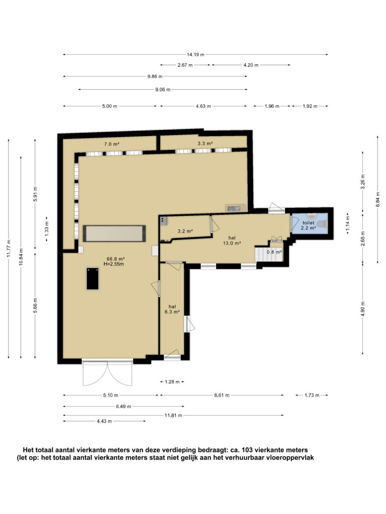 Via dubbele openslaande deuren is de winkelruimte direct te bereiken. Daarnaast is via een naastgelegen hal/entree het object te betreden. Naast de hoofdingang is er een zij ingang, welke de gemeenschappelijke ruimte betreft. Deze geeft via een entree toegang tot de gang en de gemeenschappelijke toiletruimte. In deze omgeving is tevens de technische ruimte gesitueerd. Boven de winkelruimte is via een vaste trap de bergzolder te bereiken, welke geschikt is ten behoeve van opslag. Hier is de schitterende houten spantconstructie van het object te zien. Daarnaast is de ruimte voorzien van een pantry, plafondafwerking en verlichting.
