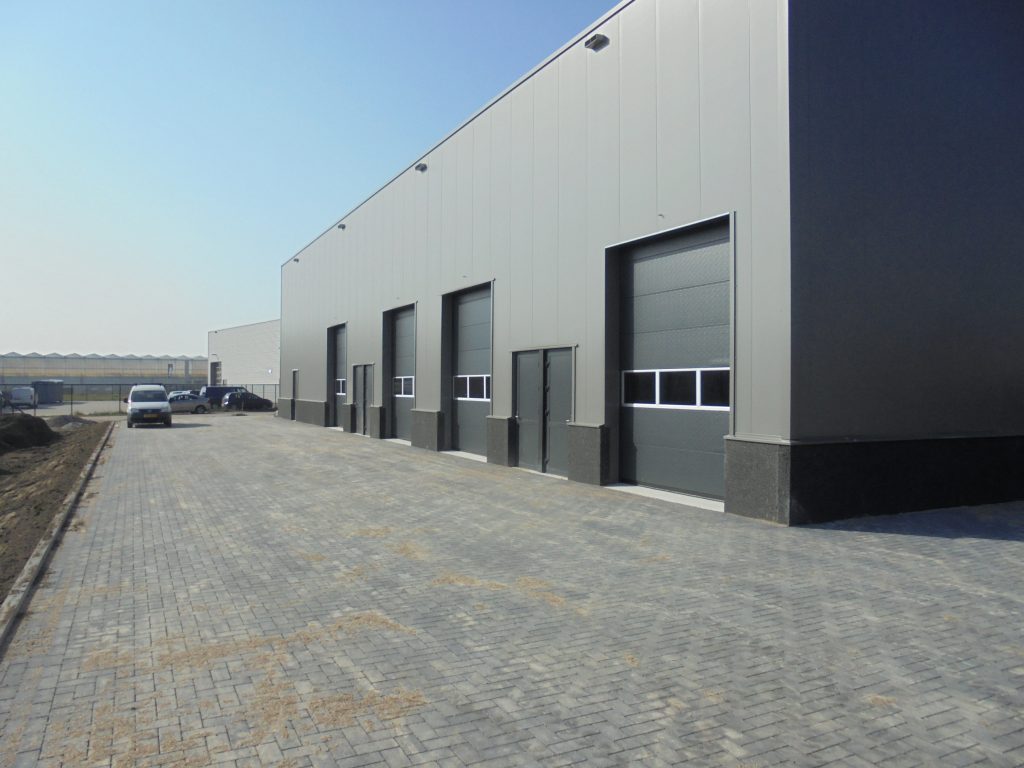 Iedere unit is voorzien van een elektrisch bedienbare overheaddeur en loopdeur.