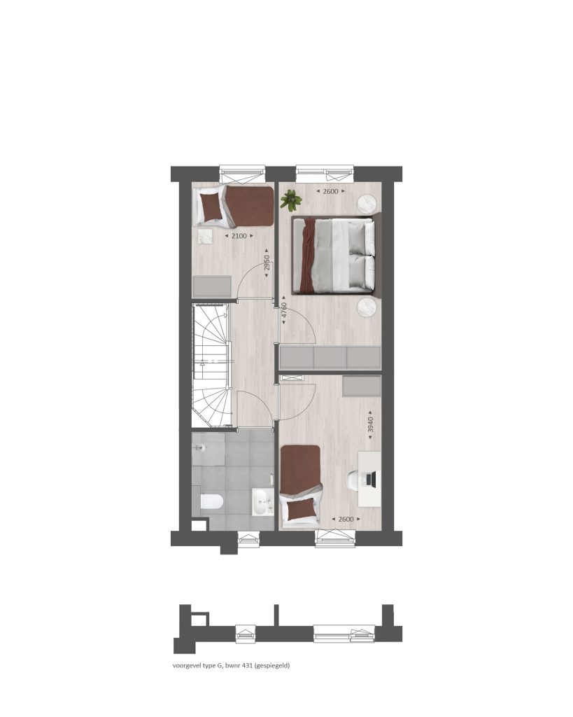 De tweede verdieping biedt je een zee aan ruimte. Hier vind je de aansluitingen voor de wasapparatuur en heb je de mogelijkheid om een aparte wasruimte te maken en een thuiskantoor of extra slaapkamer met dakkapel aan de voor- én/of achterzijde.