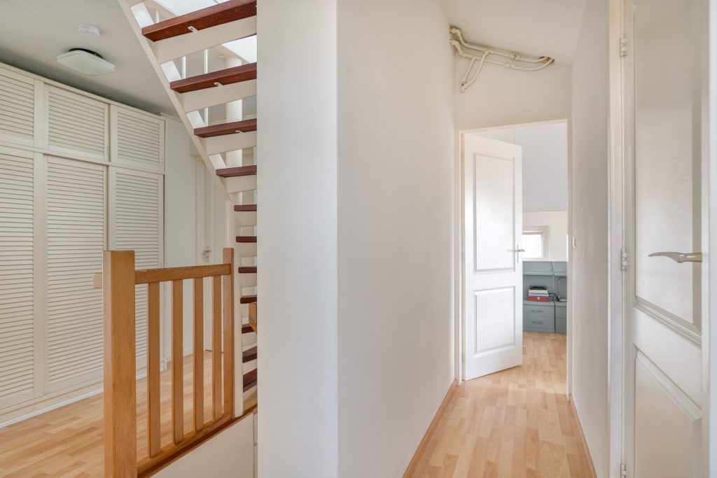 De ruime overloop op de 1e verdieping geeft toegang tot de badkamer en de 4 slaapkamers. Ook is er een vaste kast op de overloop aanwezig.