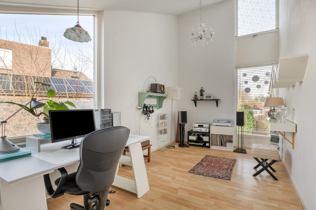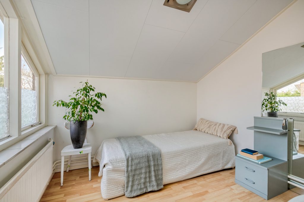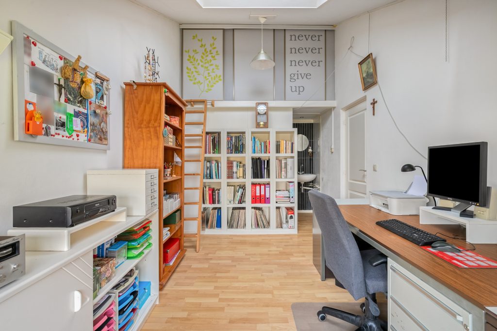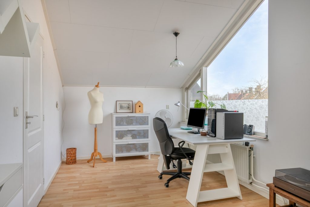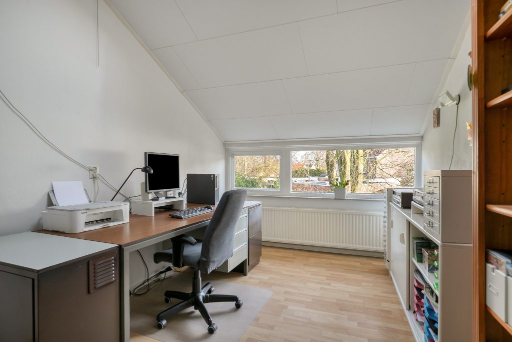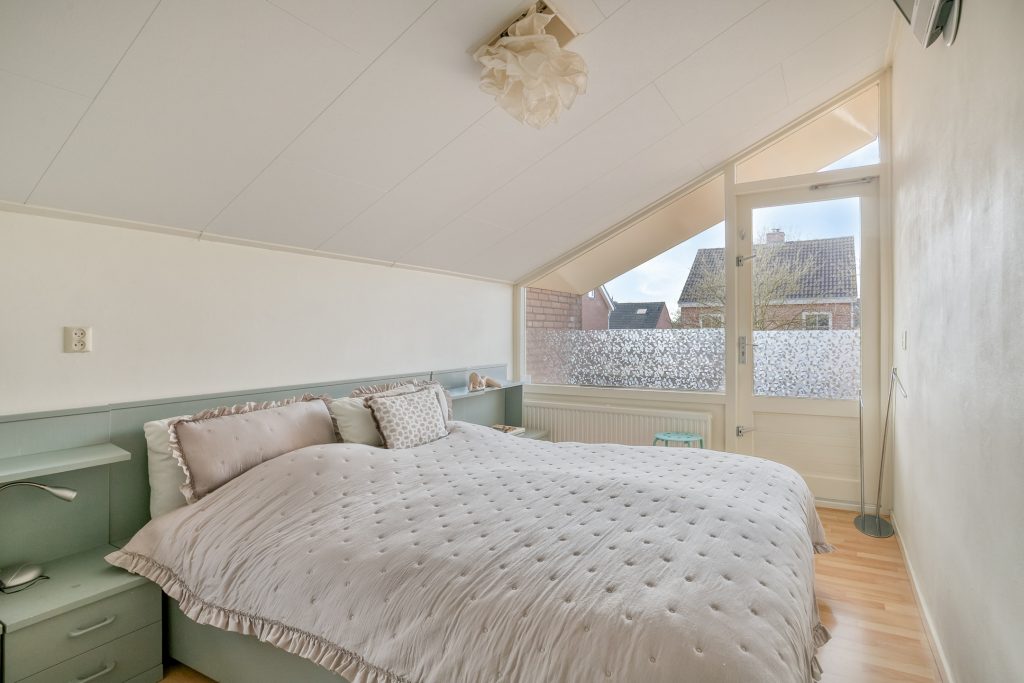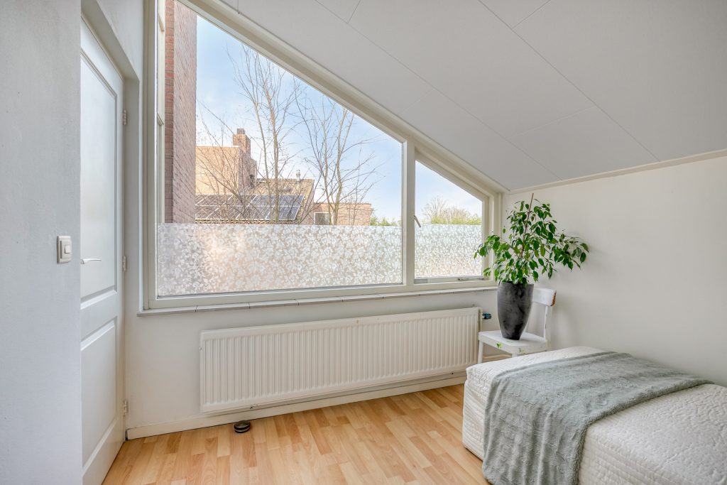 De hoofdslaapkamer is aan de voorzijde gelegen en beschikt over een balkon. De 2e ruime slaapkamer geniet volop lichtinval en heeft een venster in de zijgevel. Slaapkamer 3 is aan de achterzijde gelegen en biedt dankzij meerdere vensters en een hoog plafond een aangename ruimtelijke beleving. Op de slaapkamer 4 is een wastafel aanwezig en geeft een losse trap toegang tot een bergzoldertje. De overloop en alle slaapkamers zijn belegd met een laminaatvloer en zijn volledig in lichte tinten afgewerkt.