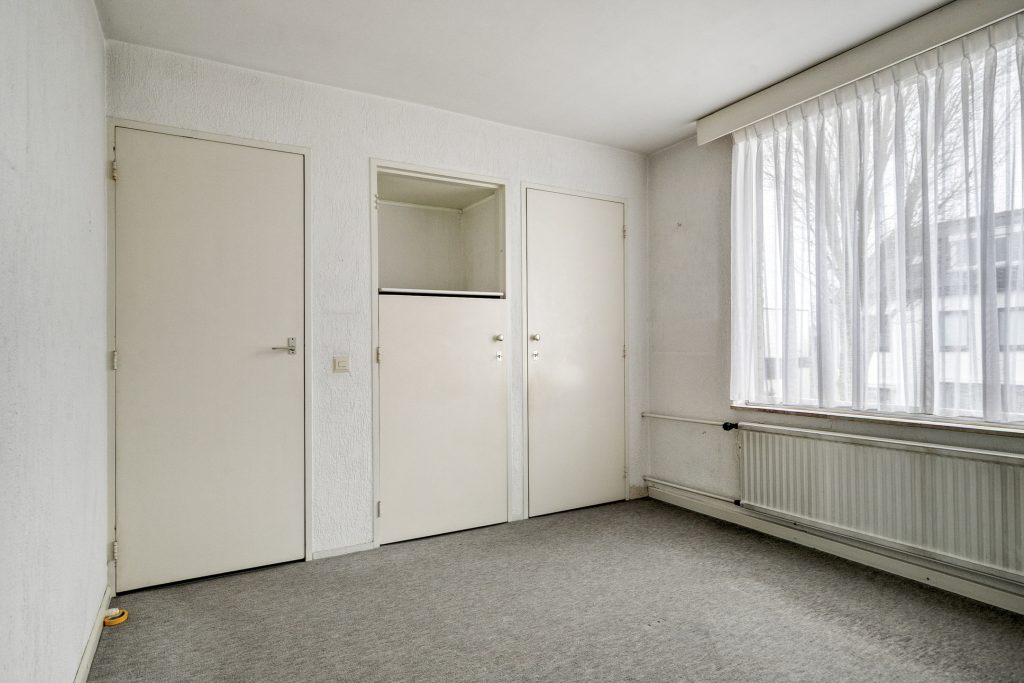 Slaapkamer 1 is aan de voorzijde gelegen en beschikt over twee vaste kasten. De 2e slaapkamer is gelegen aan de achterzijde, heeft 2 kasten en een wastafel. De 3e slaapkamer, eveneens aan de achterzijde, is voorzien van 2 vaste kasten en een rolluik. Alle slaapkamers beschikken over aluminium kozijnen met enkele beglazing. De kamers zijn belegd met vloerbedekking en zijn in lichte tinten afgewerkt.