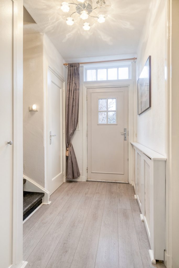 In de ruime hal bevinden zich de toiletruimte, trapopgang, meterkast en garderobe. Vervolgens zijn de keuken en de provisiekelder toegankelijk. De toiletruimte is volledig betegeld en voorzien van een hangend toilet. De verrassende provisiekelder biedt volop bergruimte.