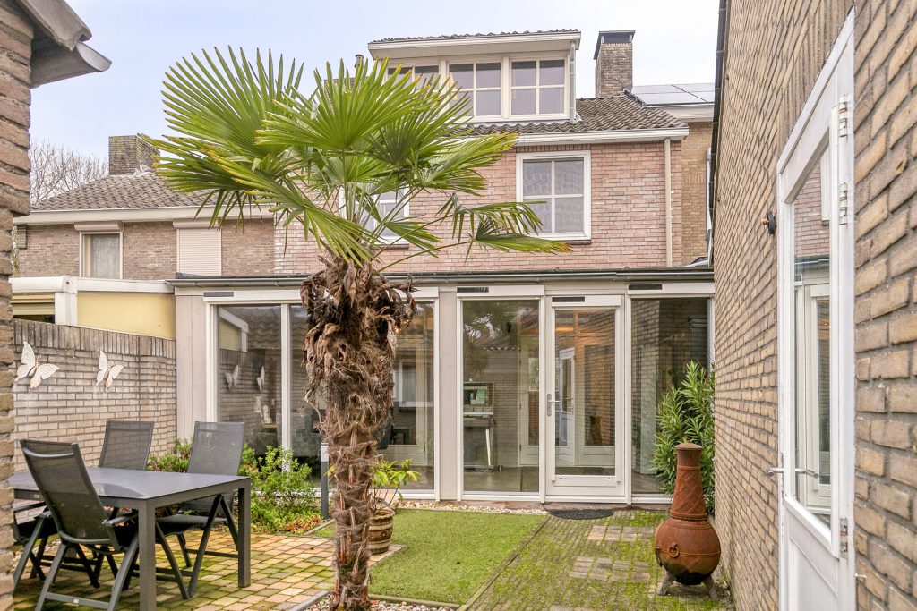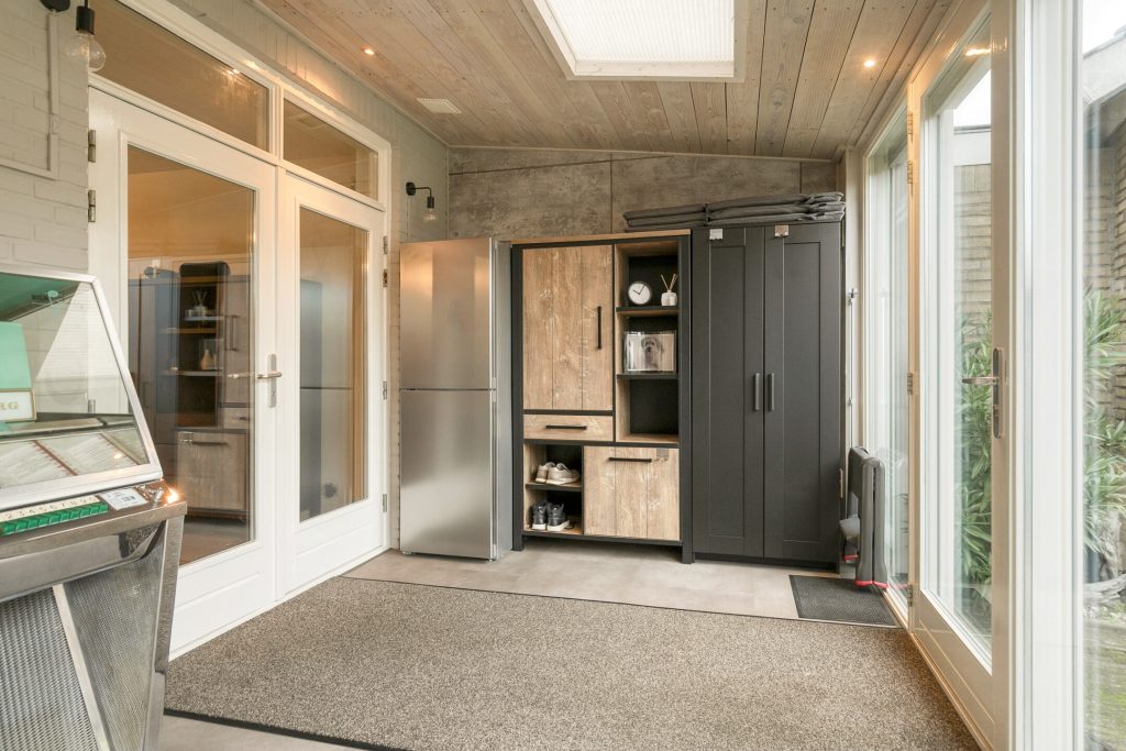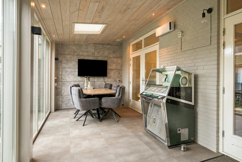 De aangebouwde tuinkamer biedt een heerlijke zitplek met zich op de tuin. De vele raampartijen zorgen voor volop lichtinval en middels elektrisch bedienbare (solar) zonnescreens is op warme dagen de zon buiten te houden.