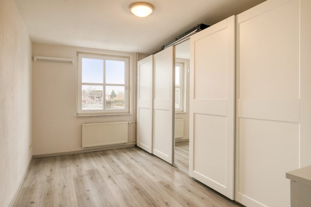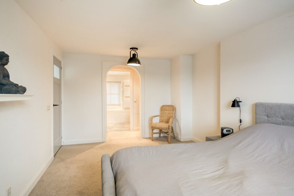 Aan de overloop op de 1e verdieping zijn 2 slaapkamers en de toilet/ wasruimte gelegen. De 1e slaapkamer bevindt zich aan de achterzijde en is ruim van afmeting. De ouderslaapkamer is nog ruimer en geeft via een doorloopkleedruimte toegang tot de badkamer. De slaapkamers zijn belegd met laminaat en vloerbedekking.