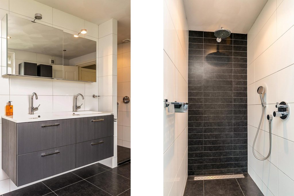 U betreedt de woning via de sierlijke entree met meterkast en vaste trapopgang naar de eerste verdieping. Vanuit de hal zijn op de begane grond de badkamer en de eetkamer te bereiken. Door de ligging van de badkamer op de begane grond zal de woning levensloopbestendig zijn. De badkamer is ruim uitgevoerd en stijlvol afgewerkt met een wasmeubel voorzien van een dubbele wastafel, een ligbad, een toilet en een inloopdouche.