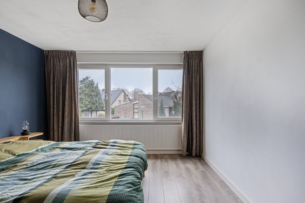 De slaapkamers zijn allen ruim van afmeting, voorzien van een laminaatvloer en gestucadoorde wanden en plafonds. De vensters zijn voorzien van elektrische bedienbare rolluiken.