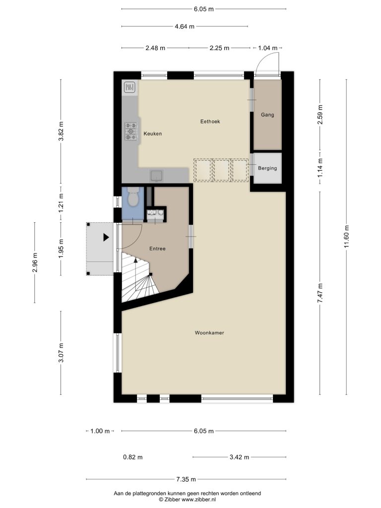Het zitgedeelte is aan de voorzijde gelegen en geniet volop lichtinval. Het eetgedeelte aan de achterzijde loopt over in de open keuken en biedt volop ruimte voor het plaatsen van een eettafel.