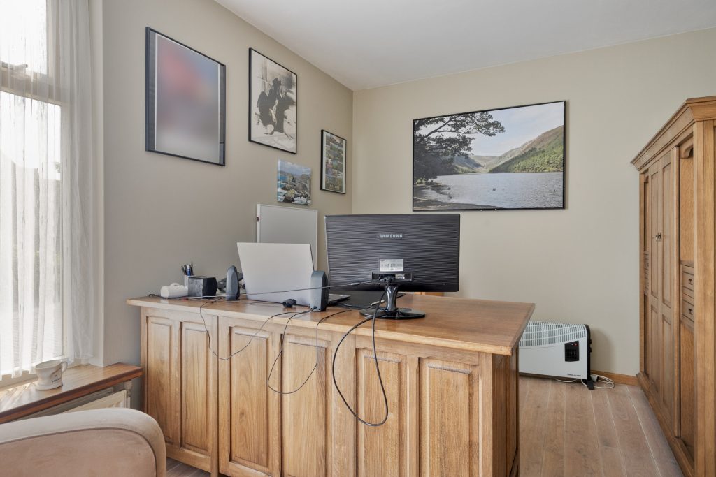 Via de entree/hal is de woning te betreden. In deze hal bevinden zich de garderobe, de meterkast (2023) en de trapopgang naar de eerste verdieping. Direct aan de linkerzijde heeft u toegang tot de kantoorruimte. Deze ruimte is tevens ideaal geschikt als speelkamer voor de kinderen of als praktijkruimte.
