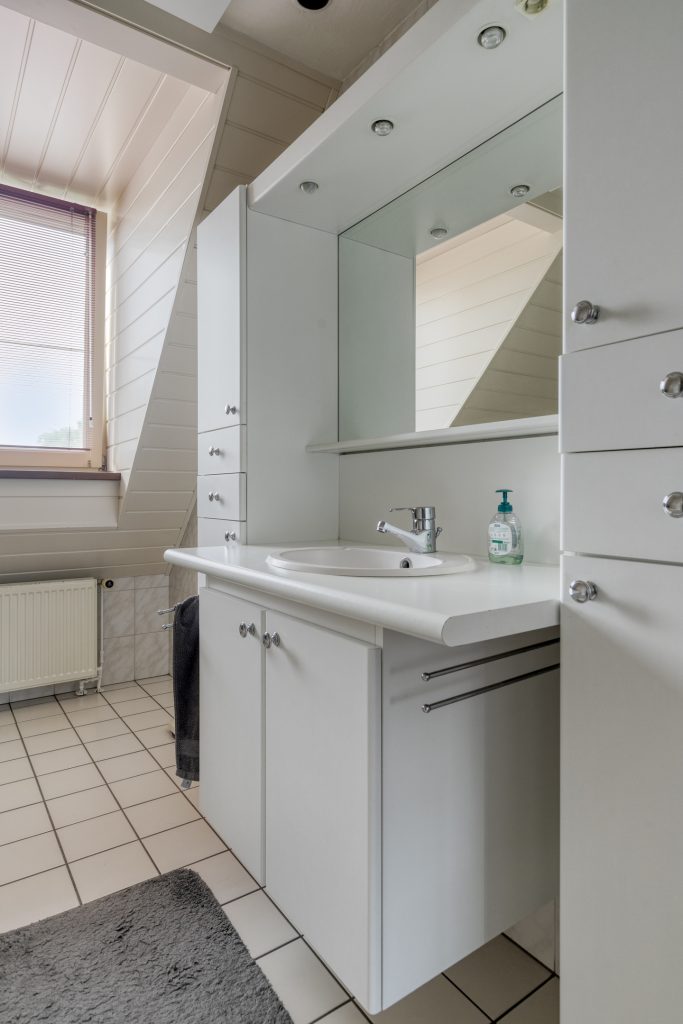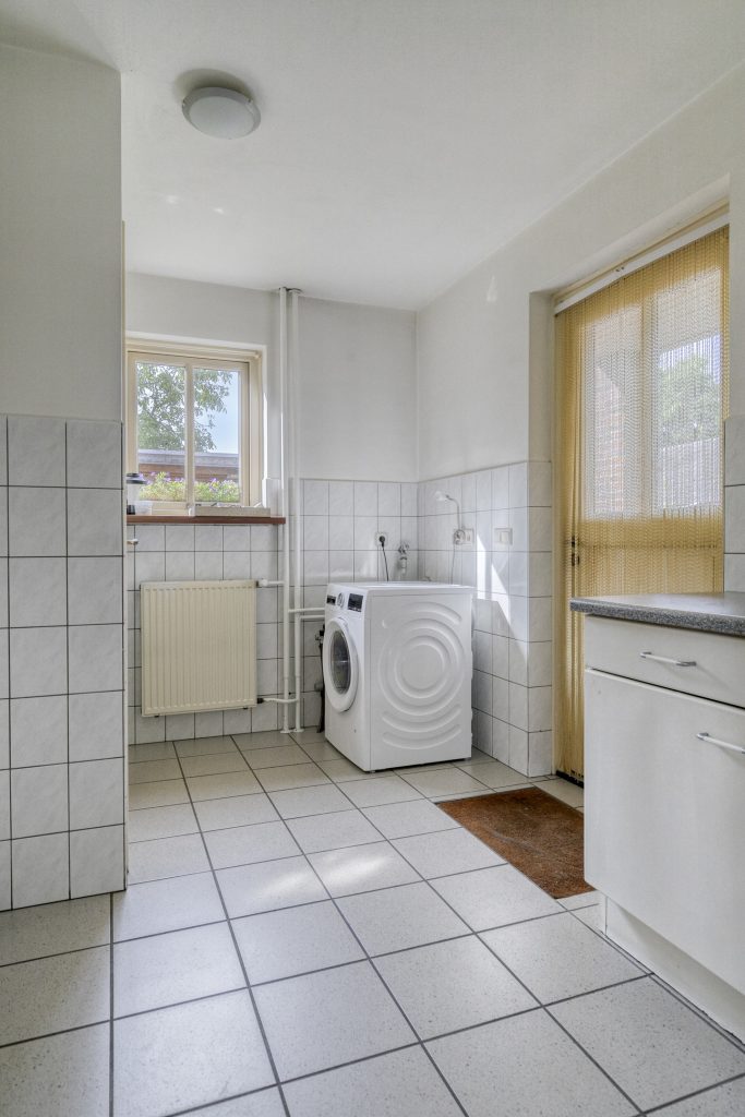 Als laatste benoemen we op de begane grond een praktische bijkeuken welke vanuit de keuken te bereiken is. Hier bevindt zich de separate toiletruimte. In de bijkeuken bevinden zich de aansluitingen ten behoeve van de wasapparatuur, een praktische kastruimte en een aanrechtblad met een spoelbak.