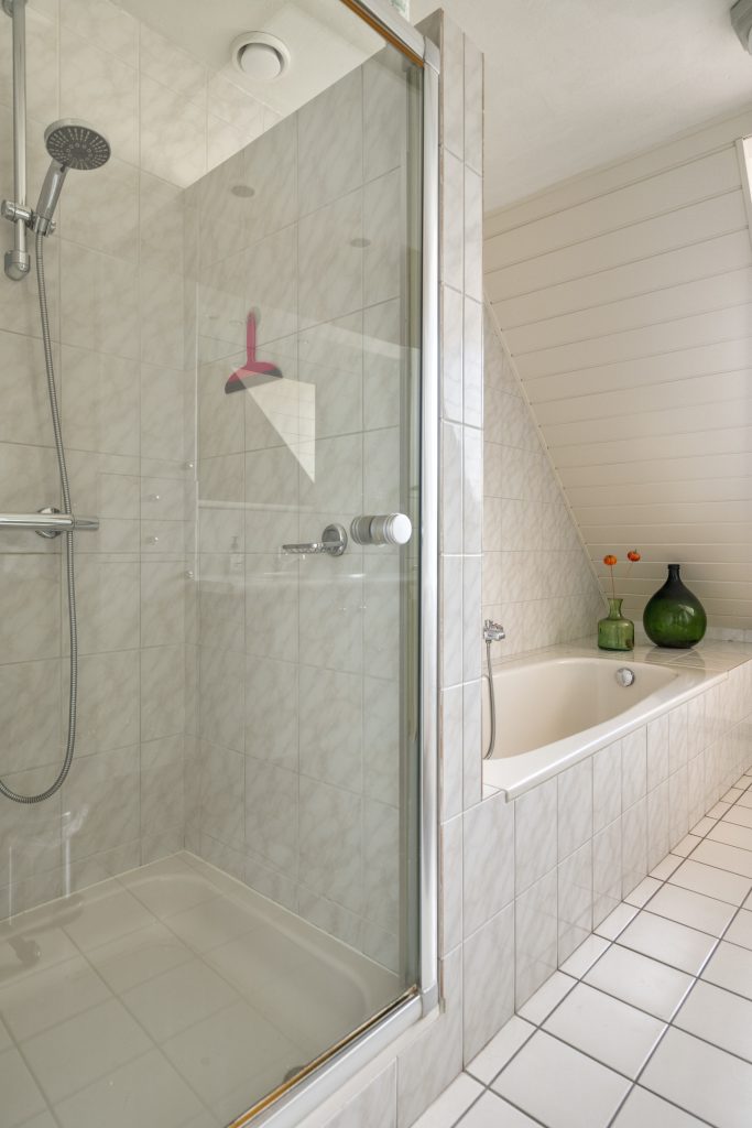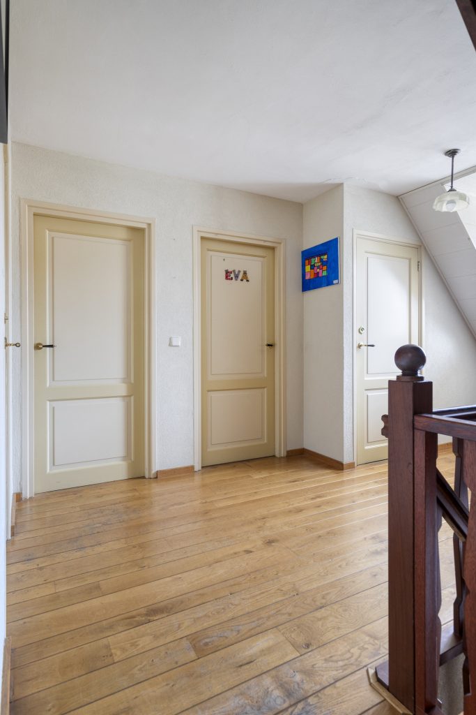 Op de eerste verdieping zijn via de overloop vier ruime slaapkamers, een separate toiletruimte en een complete badkamer te bereiken. Twee slaapkamers zijn aan de voorzijde van de woning gelegen en twee slaapkamers zijn aan de achterzijde van de woning gelegen. De badkamer is ingericht met een ligbad, een douche en een wastafel in een meubel. Vanuit één slaapkamer is een bergruimte te bereiken en hier bevindt zich de opstelling van de cv-combiketel.