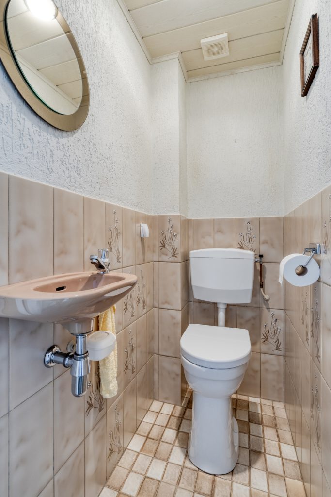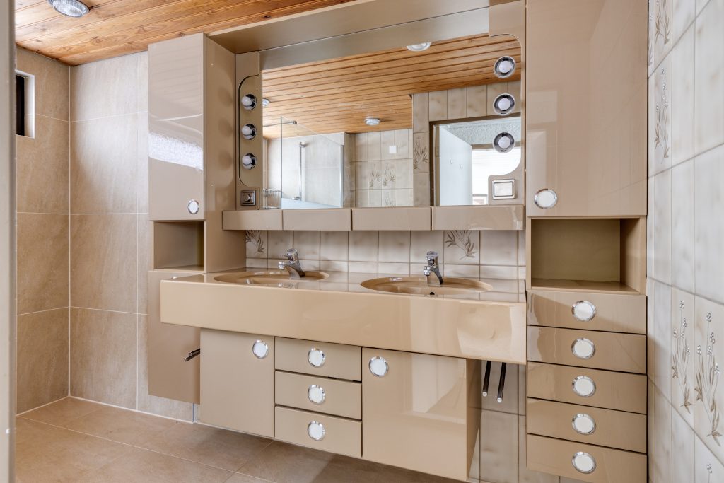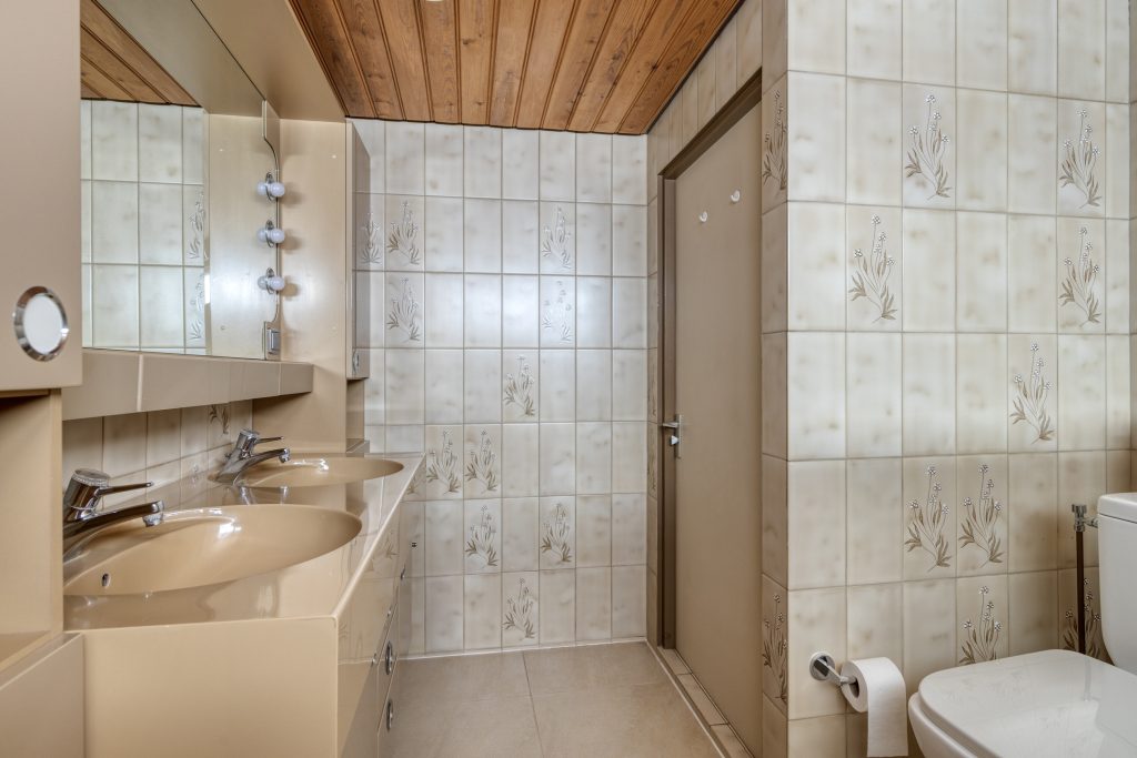 Aan de overloop op de 1e verdieping zijn de badkamer en 3 slaapkamers gelegen. De badkamer is ruim van afmeting en is deels gemoderniseerd. Zo is er een inloopdouche aanwezig, alsmede een wastafelmeubel (dubbele wastafel) en toilet.