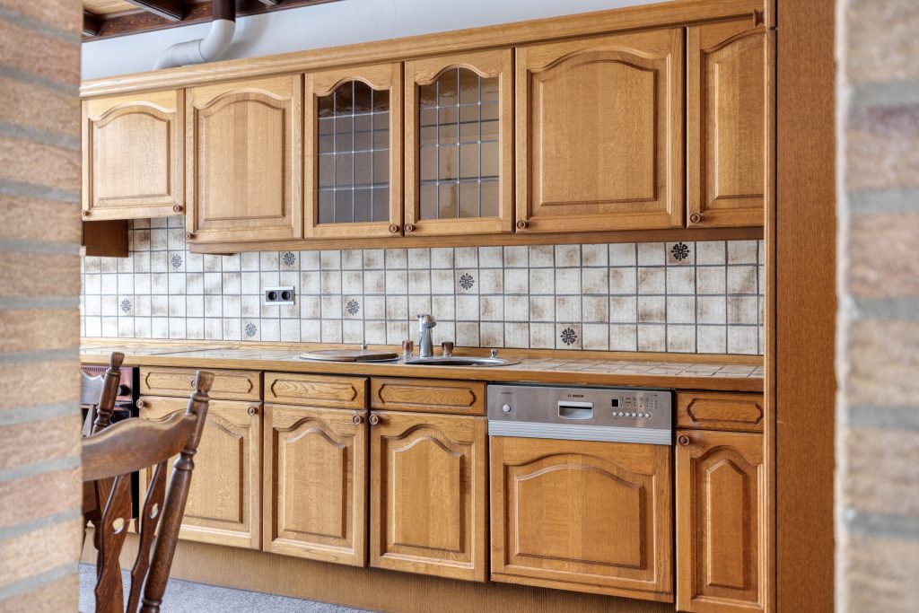 In de hal bevinden zich de kelderkast, trapopgang, meterkast en toiletruimte. Vervolgens is de keuken toegankelijk. De keuken is gedateerd maar netjes onderhouden en is uitgevoerd met een dubbele rvs spoelbak met close-in-boiler, keramische kookplaat, afzuigkap, oven, vaatwasser en koelkast. Vervolgens zijn de woonkamer en tuin toegankelijk.