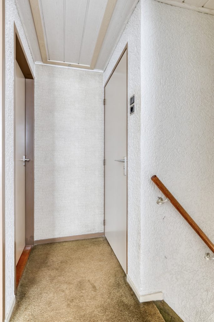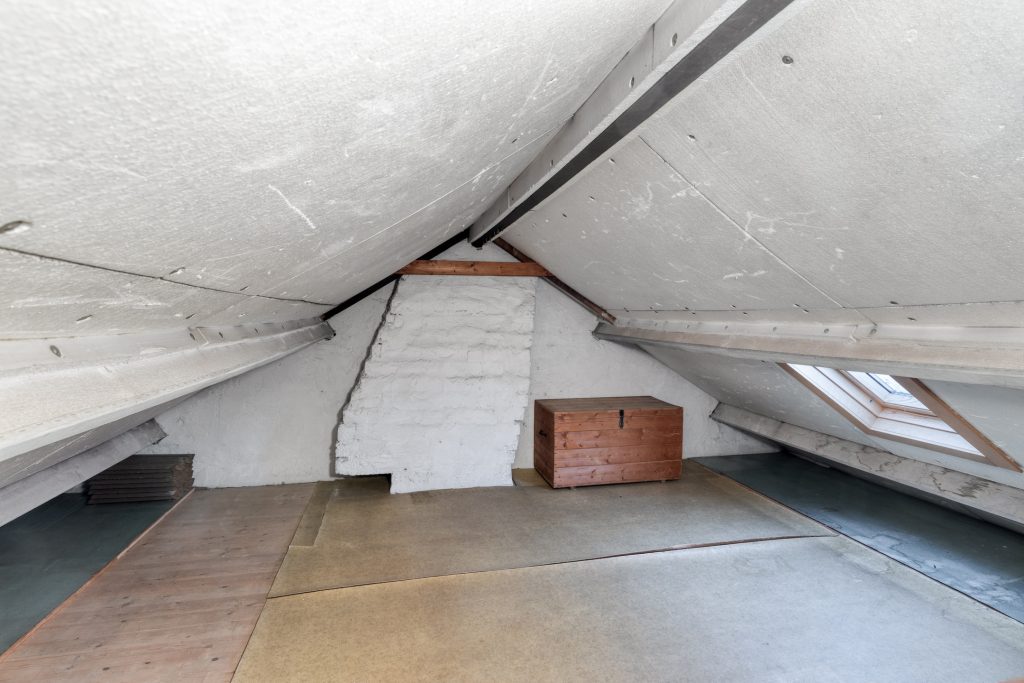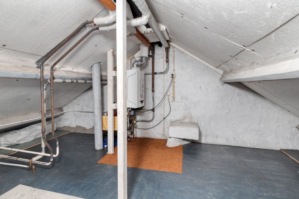 Een vlizotrap biedt toegang tot de 2e verdieping. Hier bevindt zich de cv-installatie. De kap van de woning is voorzien van HWC dakplaten, aan de binnenzijde afgewerkt met piepschuim isolatieplaten.