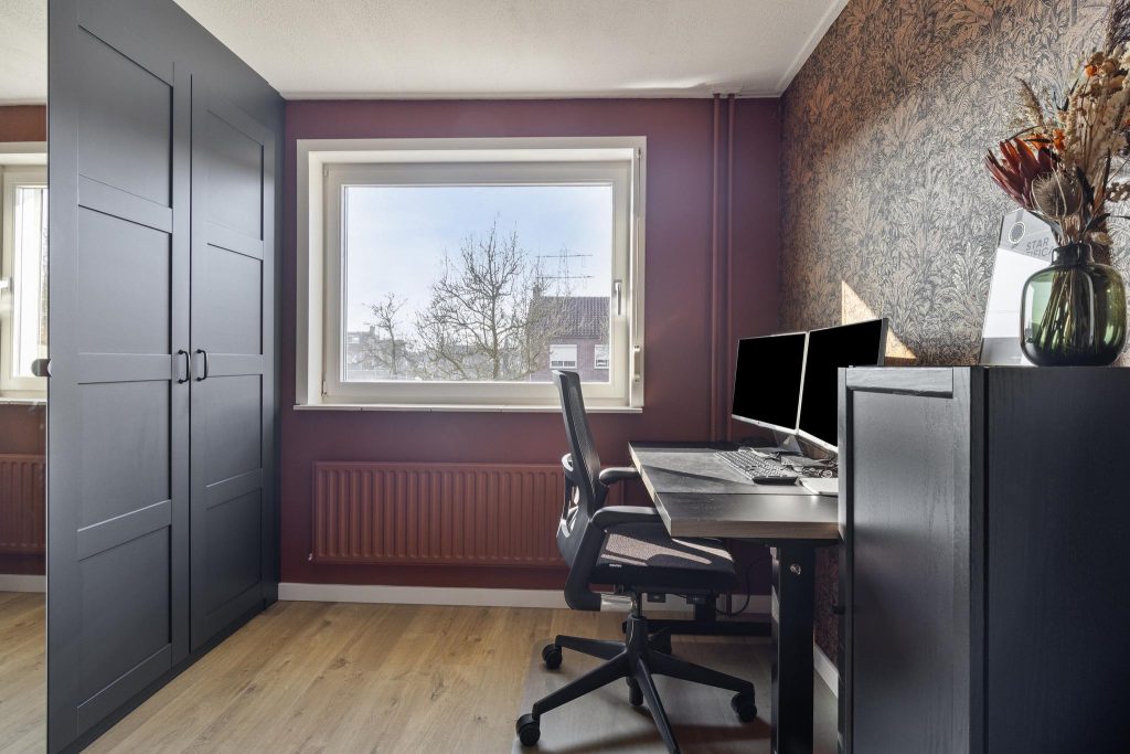 De drie slaapkamers zijn voorzien van een laminaatvloer, vensters met rolluiken en op twee kamers is een vaste kast aanwezig.