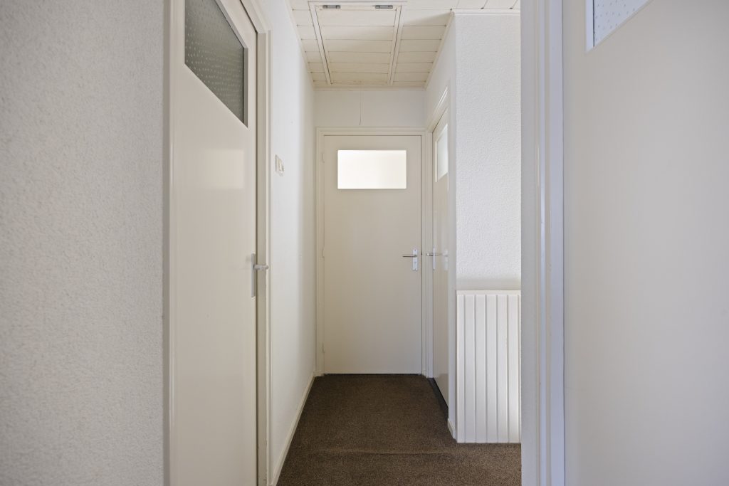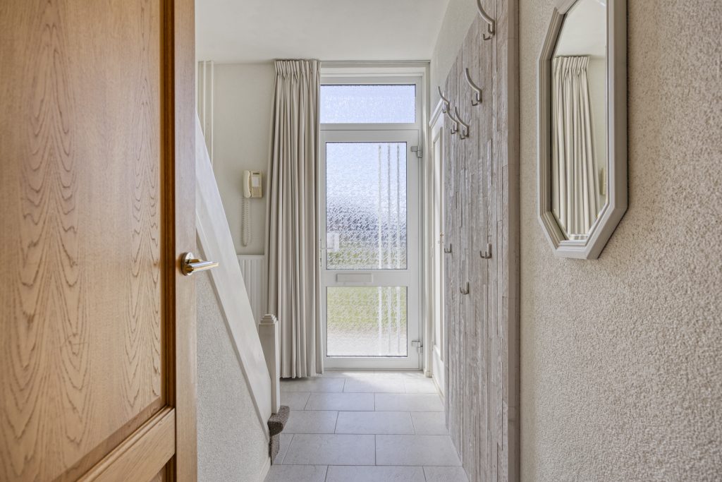 Via de ruime entree/hal is de woning te betreden. Hier bevinden zich de garderobe, de meterkast en de trapopgang naar de eerste verdieping. Vanuit hier heeft u toegang tot de woonkamer.