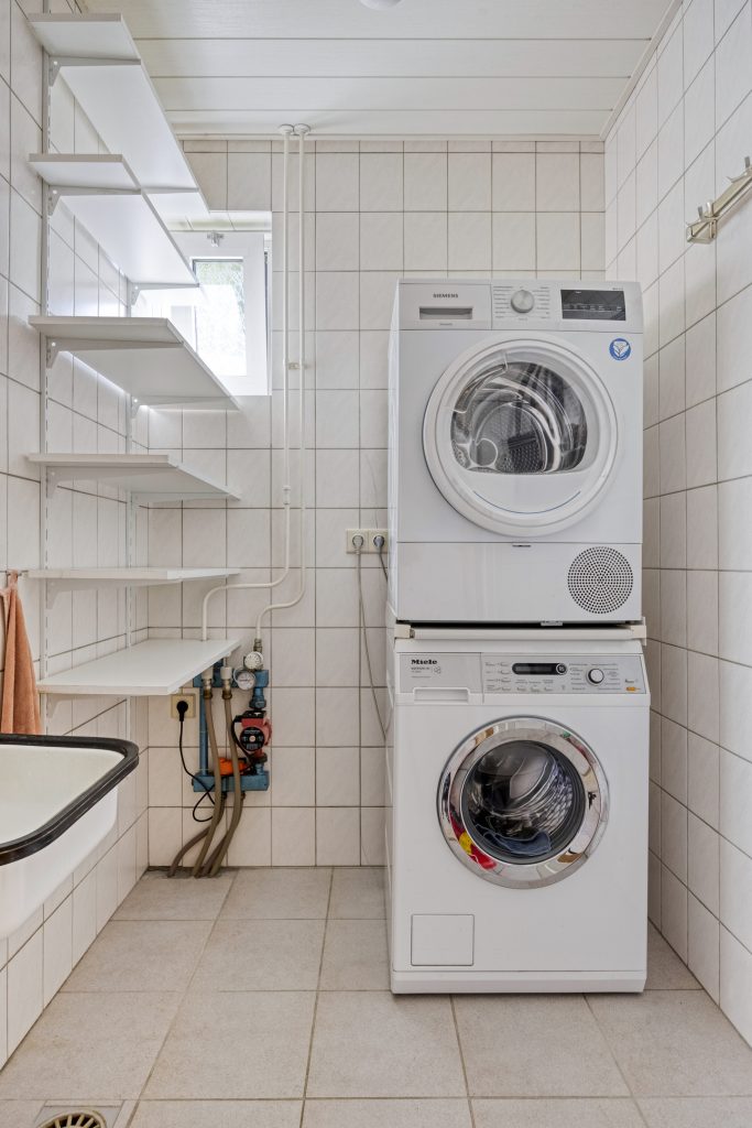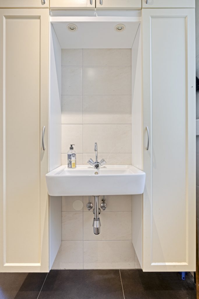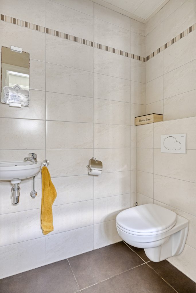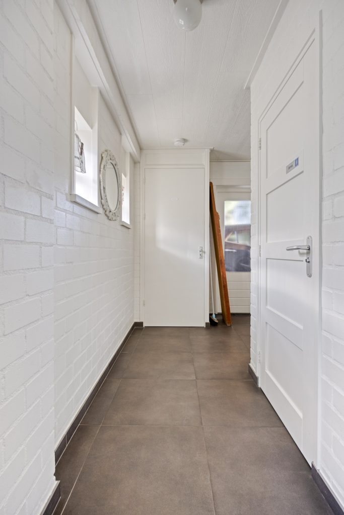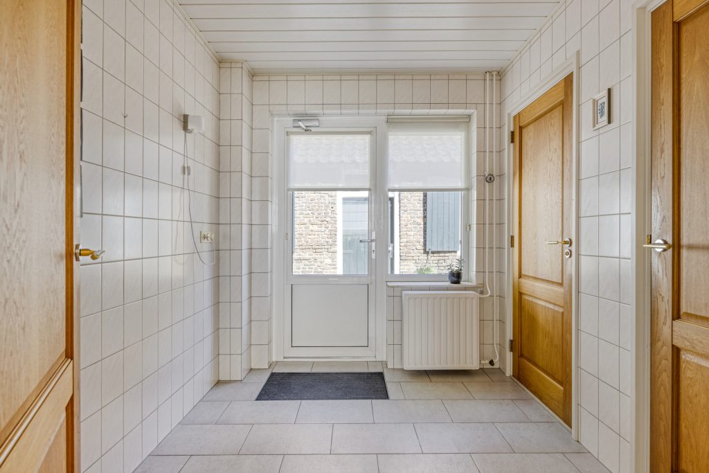 Vanuit de keuken is de achterentree te bereiken. In de achterentree kunt u via een tuindeur naar de groene achtertuin. Vanuit hier zijn tevens de berging/wasruimte en de separate toiletruimte te bereiken.