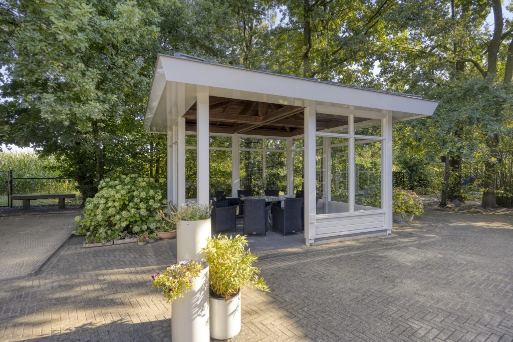 Bij de dagopvang behoort ook een vrijstaande serre welke is voorzien van veiligheidsglas. Hier kan met heerlijk genieten van de tuin en het groen. Naast deze serre is een jeu de boules baan gelegen.