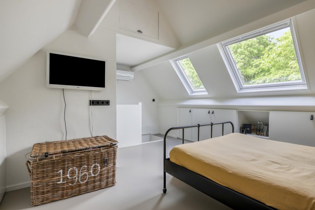 Een vaste trap geeft toegang tot de 2e verdieping, waar zich een slaapkamer en een cv-/wasruimte bevinden. 2 dakvenster zorgen voor lichtinval en onder het knieschot is volop kastruimte aanwezig. Ook deze verdieping beschikt over een airco-unit en is afgewerkt met een gietvloer. In de cv-/wasruimte bevinden zich de witgoedaansluitingen en de cv-installatie.