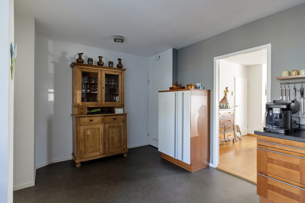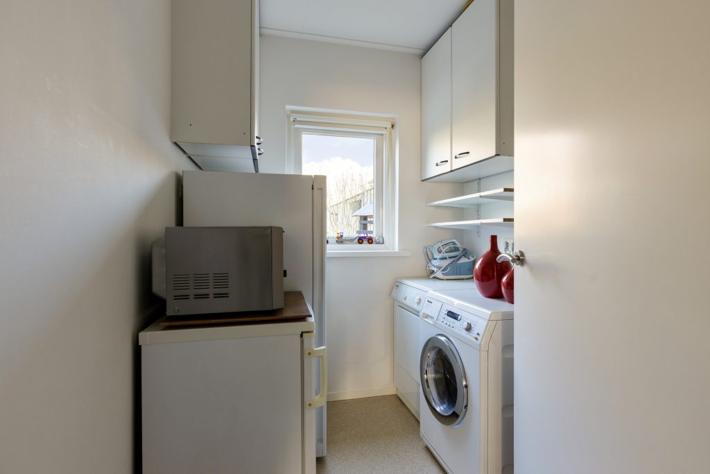Vanuit de keuken heeft u ook toegang tot de bijkeuken met aansluitingen voor wasapparatuur en tot een ruime berging.