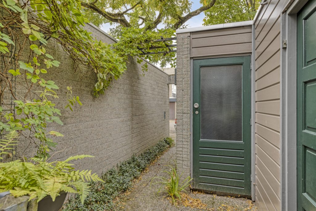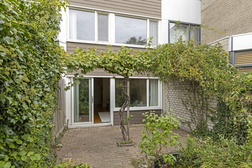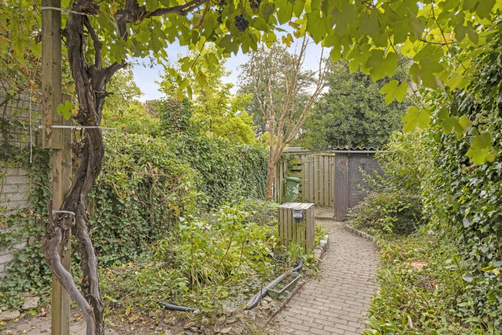 De achtertuin is een plek waar u met gemak de seizoenen beleefd. Direct aan de woning ligt een terras waar u ’s zomers geniet van de zon. In het midden van de tuin is een pad aangelegd, waardoor u makkelijk naar de achterom kunt lopen. Langs dit pad zijn borders met vaste beplantingen aanwezig. Achterin de tuin vindt u een stenen berging en de poort naar de vrije achterom.