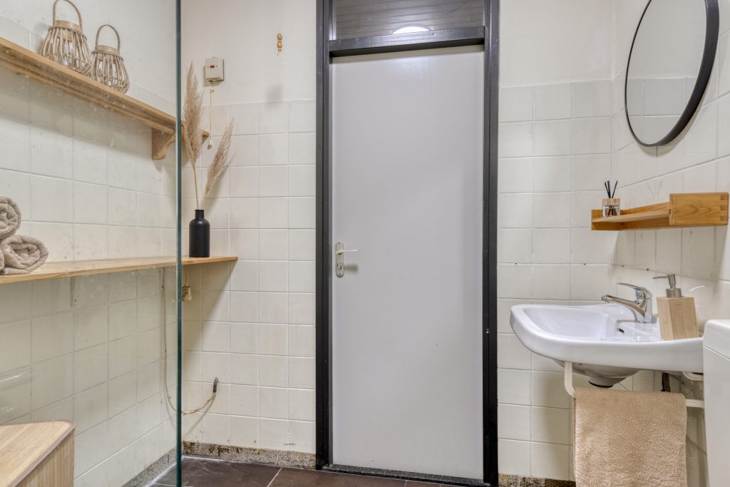 Op de eerste verdieping treft u twee ruime slaapkamers en een praktische overloop met extra kastruimte onder de trap. De badkamer is functioneel en compleet ingericht met een douche, toilet, wastafel en aansluitingen ten behoeve van de wasapparatuur.
