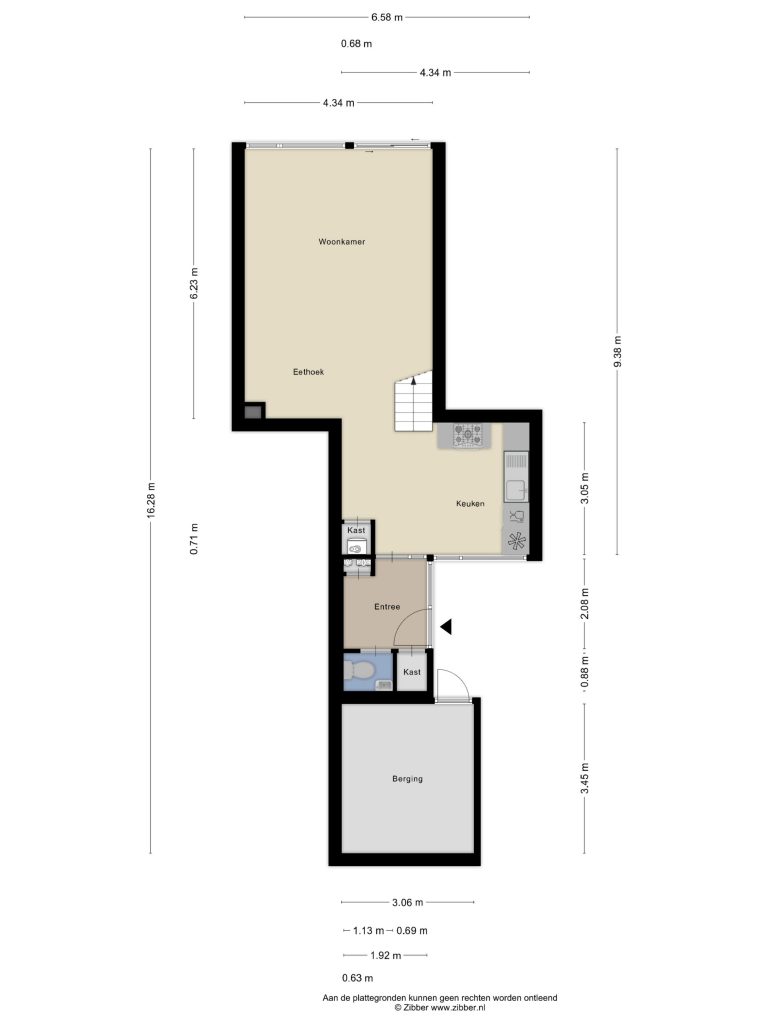 Via de voortuin bereikt u de voordeur van de woning met daarachter de entree/hal met garderobe, meterkast en een separate toiletruimte. Voordat u de woning bereikt treft u eerst eerst nog een aangebouwde berging welke ideaal geschikt is voor uw fietsen.
