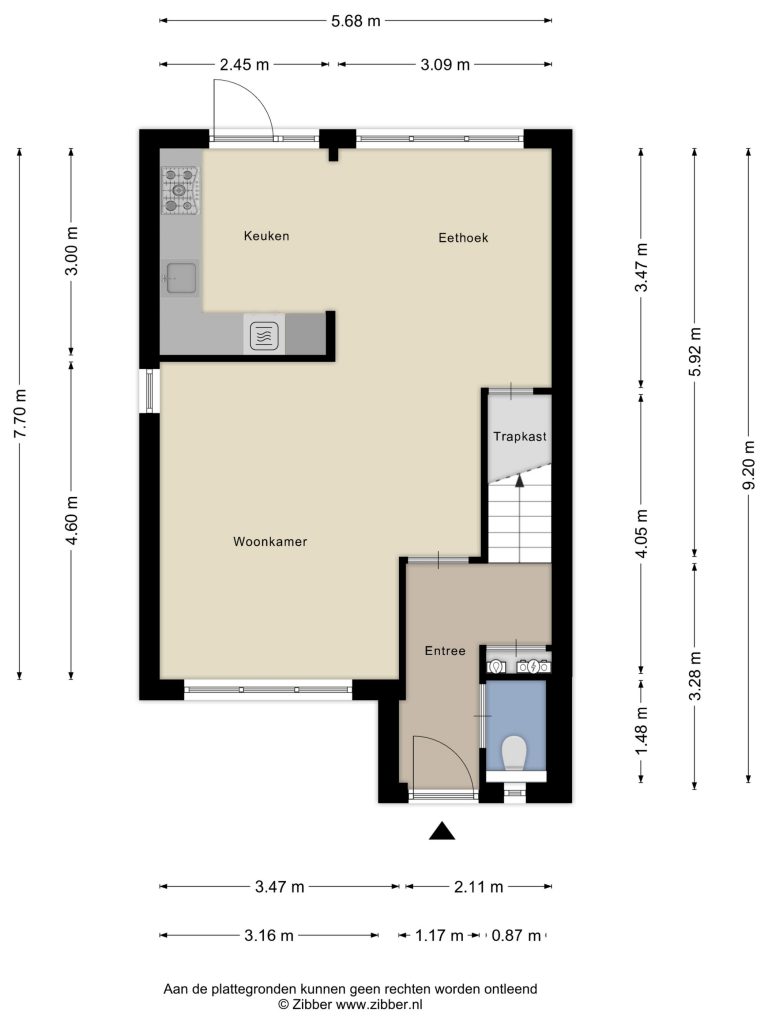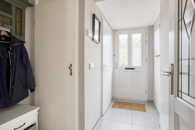 Via de entree/hal betreedt u de woning. Hier bevinden zich tevens de separate toiletruimte, de meterkast, de garderobe en de trapopgang naar de eerste verdieping. Van hieruit heeft u toegang tot de lichte woonkamer.