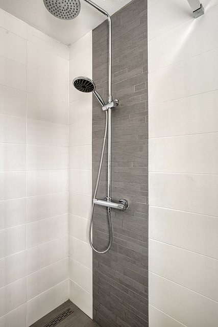 De badkamer is gelegen aan de voorzijde van de woning en is ingericht met een inloopdouche, een wastafel en een wc. Ook hier is gekozen voor een lichte tijdloze inrichting waar u de keurige afwerking opnieuw ziet terugkomen. De badkamer verkrijgt natuurlijke lichtinval en natuurlijke ventilatie door middel van een raam.