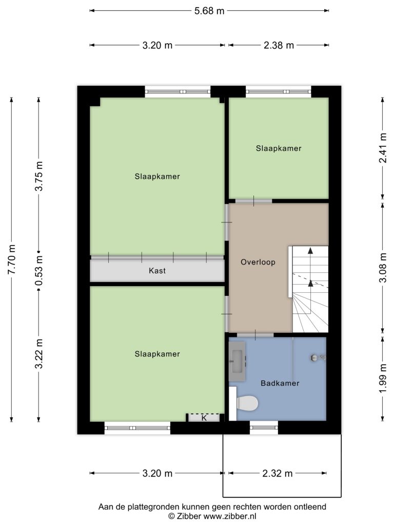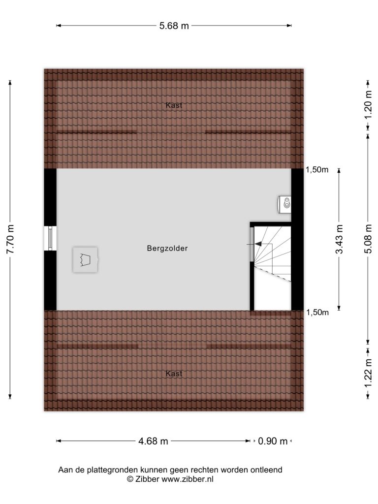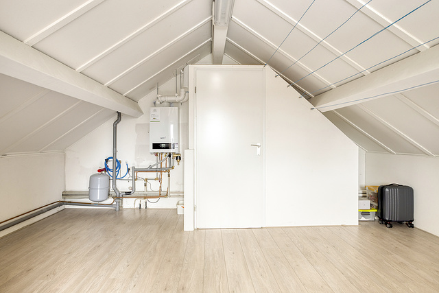 Via een vaste trap is de tweede verdieping te bereiken, deze is afgesloten met een deur. Hier wordt natuurlijk daglicht verkregen door middel van een dakraam. Hier bevinden zich de wasmachineaansluiting en de cv-combiketel. Er is een kast gerealiseerd die voor voldoende bergruimte zorgt. Deze ruimte kan in gebruik genomen worden als een vierde slaapkamer.