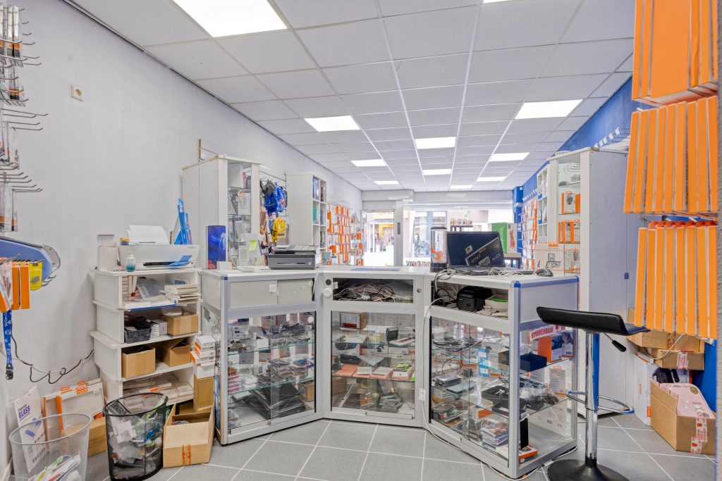 Bij binnenkomst valt het nette systeemplafond op, wat bijdraagt aan de professionele uitstraling van de ruimte. Het winkelgedeelte is overzichtelijk en goed bruikbaar voor diverse commerciële doeleinden.