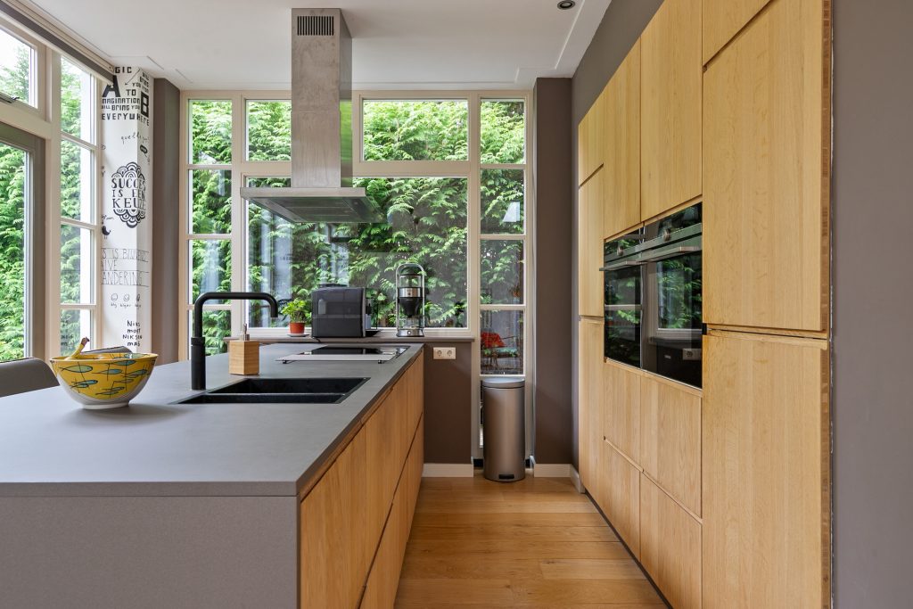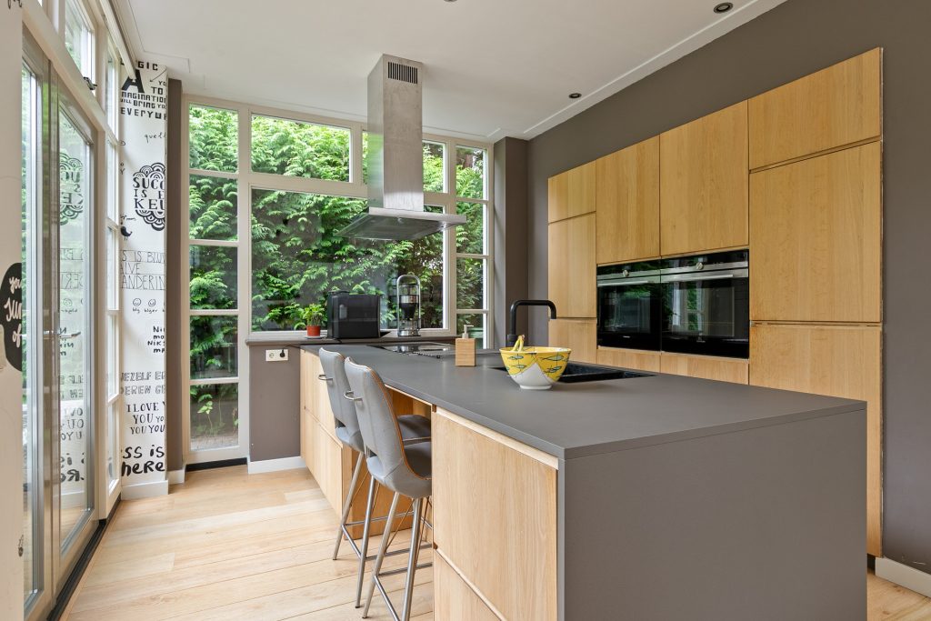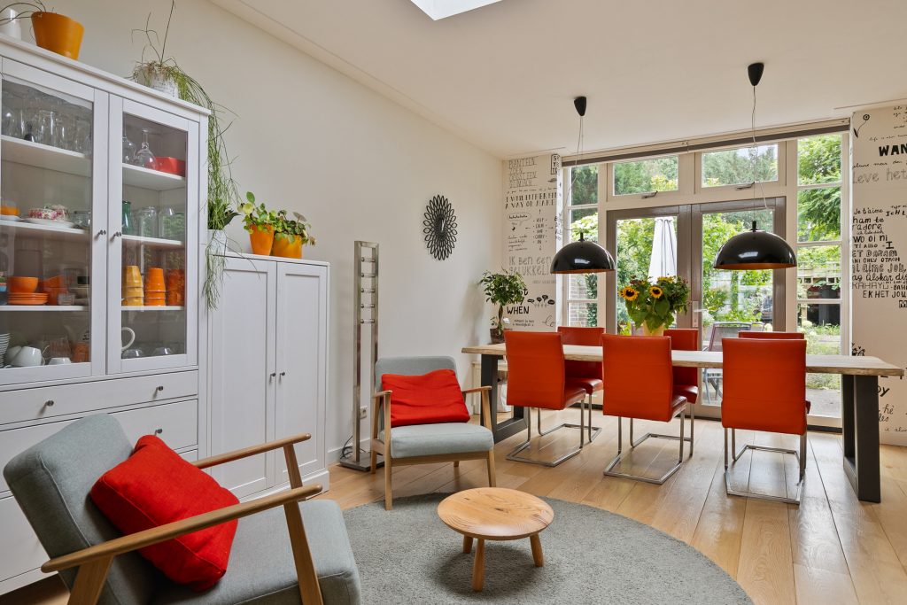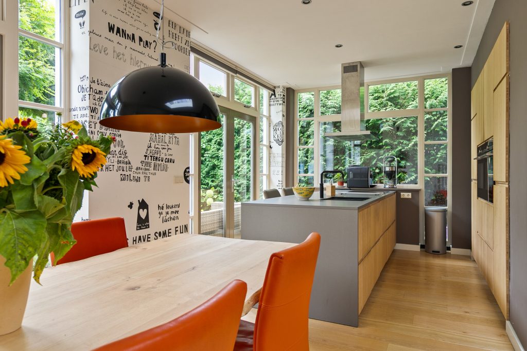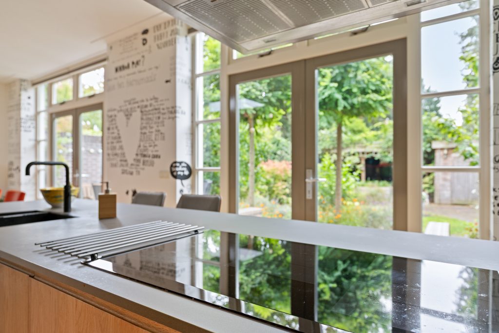 De leefkeuken vormt het hart van deze gezinswoning en geniet dankzij de ligging op de zonzijde van volop lichtinval. De uitbouw is in 2018 gerealiseerd en voorzien van vloerverwarming, dubbele openslaande tuindeuren naar de achtertuin en een stucwerk plafond met inbouwverlichting en een grote lichtstraat.