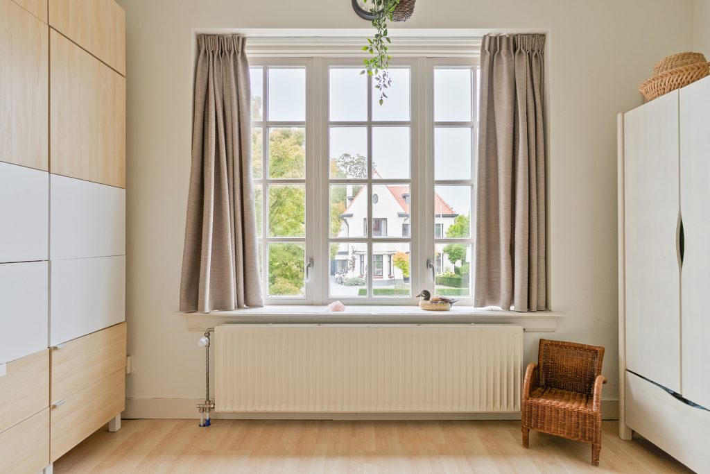 Aan de overloop op de 2e verdieping zijn nog eens 3 slaapkamers, een 2e badkamer en een bergruimte gelegen. De 4e slaapkamer bevindt zich aan de voorzijde en heeft een dakkapel. In een vaste kast bevindt zich de opstelling voor de cv-installatie. Slaapkamer 5 is gelegen aan de achterzijde en middels een luik is een bergvliering bereikbaar. De 6e slaapkamer heeft toegang tot een eigen balkon aan de achterzijde, gelegen op de zonzijde en met zicht over de achtertuin