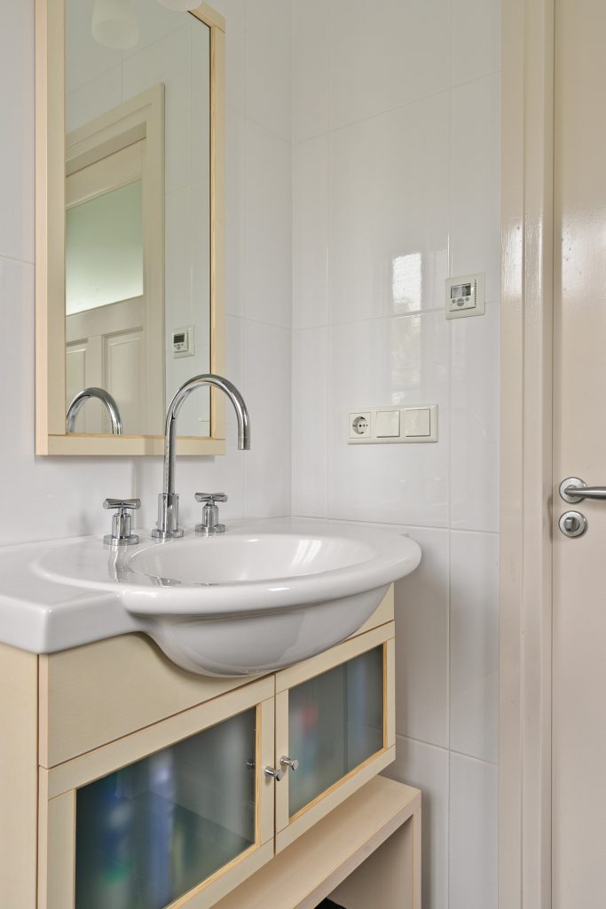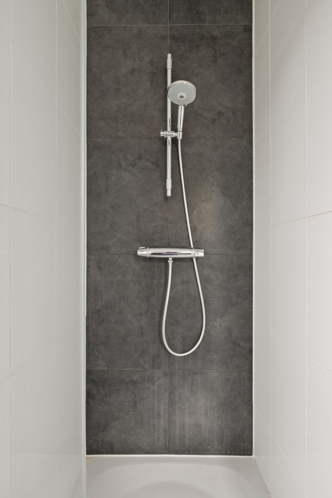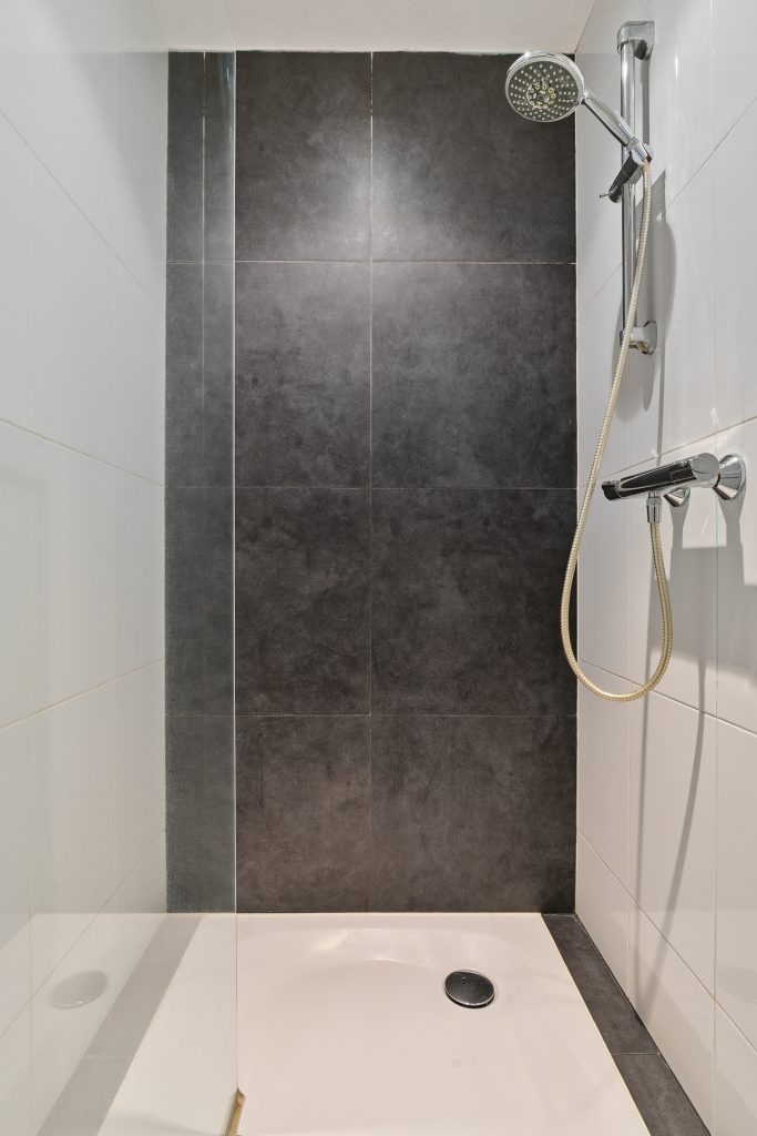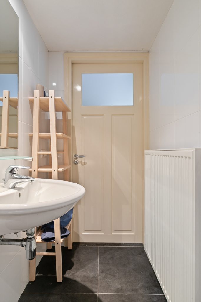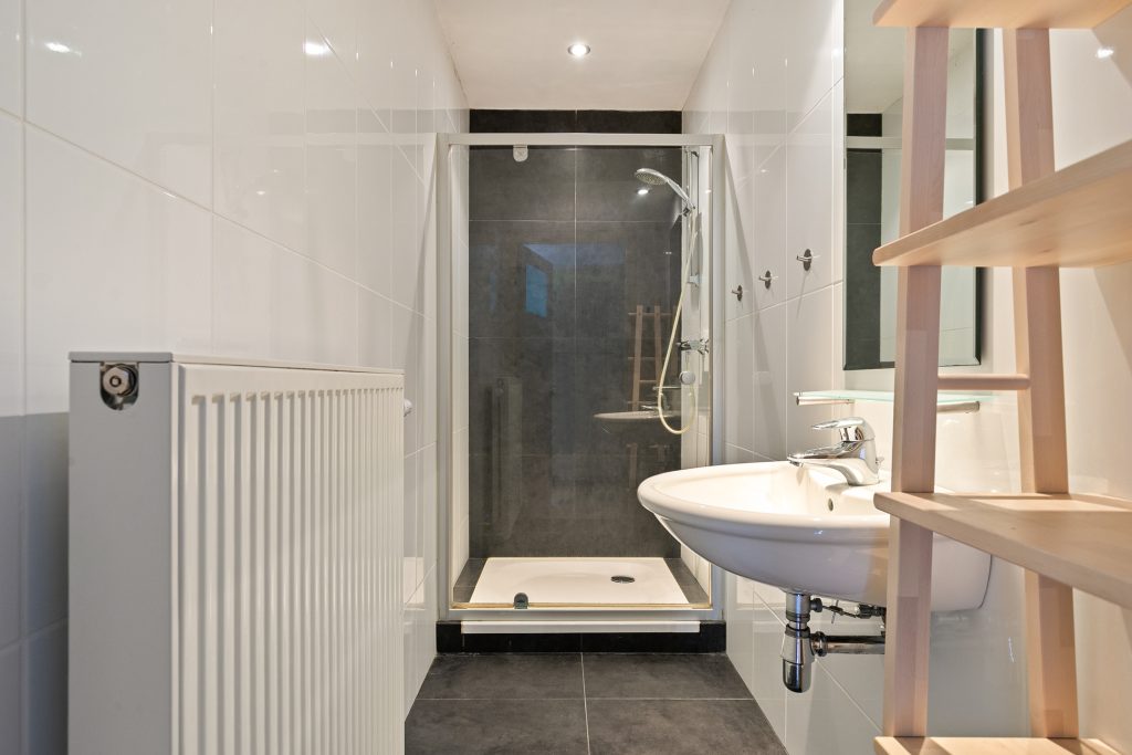 De tweede badkamer heeft een douche, wastafel en mechanische afzuiging.